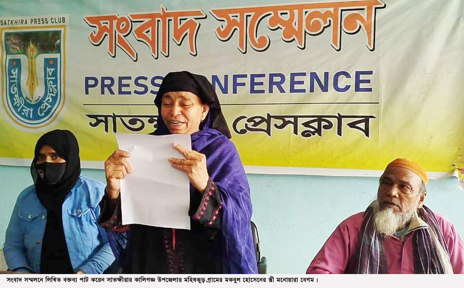সাতক্ষীরাপ প্রতিনিধি: সাতক্ষীরায় মিথ্যা হয়রানী মামলা থেকে মুক্তি পেতে ও প্রবাস থেকে ছেলেকে দেশে ফিরে পেতে আকুতি জানিয়েছে বৃদ্ধা এক মা মনোয়ারা বেগম। মঙ্গলবার দুপুরে সাতক্ষীর প্রেসক্লাবের আব্দুল মোতালেব মিলনায়তনে এক সংবাদ সম্মলনে লিখিত বক্তব্য পাট করেন সাতক্ষীরার কালিগজ্ঞ উপজেলার মহিষকুড় গ্রামের মকবুল হোসেনের স্ত্রী মনোয়ারা বেগম।তিনি তার লিখিত বক্তব্যে বলেন, চাকুরীর সুবাদে তার ছেলে প্রায় বছর ধরে সৌদি আরবে রয়েছে। কিন্তু এই সুযোগ কাজে লাগিয়ে একই এলাকার মৃত আবুল চৌকিদারের ছেলে বহু নারী কেলেঙ্কারীর হোতা মামলাবাজ স্বৈরাচার খুনি হাসিনার আওয়ামীলীগের দোষর এখন বিএনপির তকমা লাগিয়ে বেপরোয়া হয়ে উঠেছে, বানিউলের নেতৃত্বে তার অন্যান্য সহযোগীরা হলেন, একই এলাকার সেলিম আহম্মেদ (৪২), আব্দুর রশিদ (৪৫), মাহমুদা খাতুন (৫০) মুক্তা পারভীন (৩৫), শেখ আতিক (২৫), আব্দুল্লাহ (২২), মোঃ শাহজাহান (৪০) গংরা গত ৫ আগষ্ট শেখ হাসিনা পদত্যাগের আইনশৃঙ্খলা বাহিনীর অকার্যকর থাকায় সেই সুযোগকে কাজে লাগিয়ে প্রবাসী মোস্তাফিজুরের পরিবারকে উচ্ছেদ করার জন্য জন্য বাড়ির সীমানার পাঁকা প্রাচীর ভাংচুর করে। মোস্তাফিজুরের পরিবারের লোকজন বাধা দিলে তারা তাদেরকে বেধড়ক মারপিট করে আহত করে একই সাথে বাড়ির প্রাচীর সহ বসত বাড়ি ভাংচুর করিয়া অনুমান ৫ লক্ষ টাকার- টাকার ক্ষতিসাধন করে। এরপর ২৬ জানুয়ারি‘২০২৫ সকালে তাদের মহেশকুড় মৌজার ৯৪, ৯৬, ৯৭, ১০৩, দাগের ১৬ শতক জমির সরিষা গাছ উপড়াইয়া ক্ষতি সাধন করে। তিনি আরো বলেন আমার ছেলে প্রবাসে থাকা কালিন তার নামে একের পর মিথ্যা মামলা দিয়ে হয়রানী করে আসছে। বর্তমানে তার ছেলে দেশে আসলে হত্যা করবে বলে প্রকাশ্য হুমকি দিয়ে যাচ্ছে বলে অভিযোগ করেন তিনি।সংবাদ সম্মেলনের মাধ্যমে তিনি ছেলেকে নিরাপদে দেশে ফিরাতে ও মিথ্যা ও হয়রানিমূলক মামলা থেকে রেহাই পেতে সাতক্ষীরা জেলা প্রশাসক, পুলিশ সুপার, সহ সেনাকর্মকর্তাদের সুদৃষ্টি কামনা করেছেন।