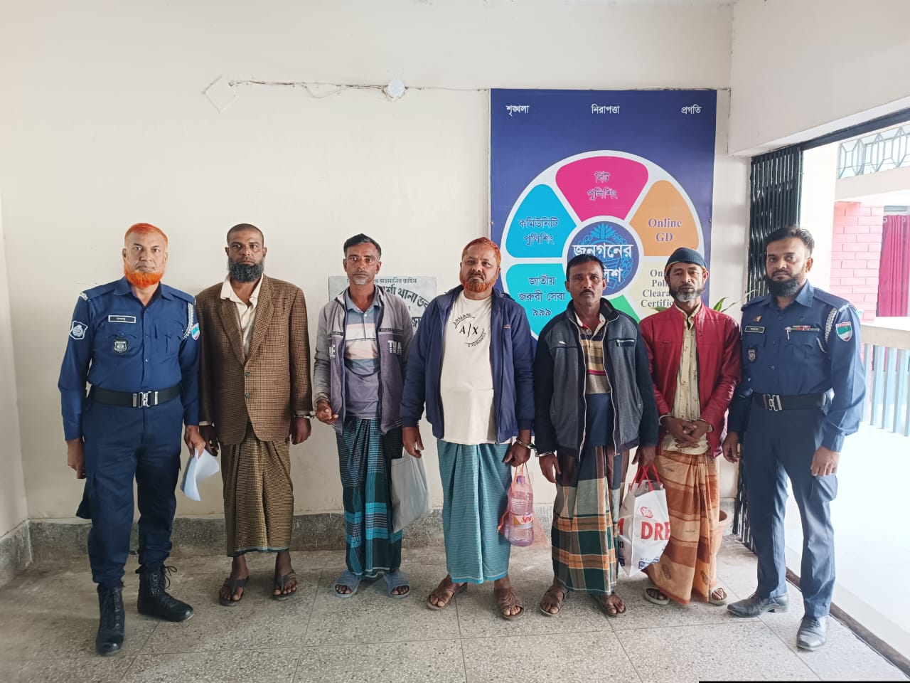 গ্রেপ্তারকৃতরা হচ্ছেন,আওয়ামীলীগ কর্মী উপজেলার মাটিপুকুর গ্রামের মৃত পাঞ্জাব আলী বিশ্বাসের ছেলে খোরশেদ আলম (৫২), একই গ্রামের আব্দুল আলীমের ছেলে রেজাউল ইসলাম (৫১),উপজেলার কাশিয়াডাঙ্গা গ্রামের মৃত আঃ রহিমের ছেলে ওয়াসিম (৪২),একই গ্রামের মৃত খলিলুর রহমানের ছেলে মশিয়ার রহমান (৪৮) এবং মানব পাচার মামলার পরোয়ানা ভূক্ত আসামী পানবুড়ি গ্রামের রহমতুল্লা ফড়ে রহমতের ছেলে হেকমত আলী ফড়ে (৪৫)।ওসি কে.এম রবিউল ইসলাম বলেন,অপারেশন ডেভিল হান্ট অভিযান পরিচালনা করে তাদেরকে আটক করা হয়েছে। এর মধ্যে ৪জন আওয়ামীলীগ কর্মী এবং একজন মানব পাচার মামলা গ্রেপ্তারি পরোয়ানা ভুক্ত আসামি। বুধবার আটককৃতদের যশোর বিজ্ঞ আদালতে সোপর্দ করা হয়েছে বলে জানান তিনি।