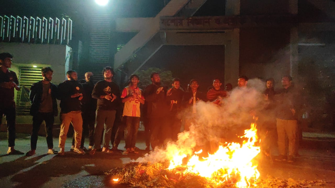 অব্যাহত ছিলো। রাতে শিক্ষার্থীরা ক্যাম্পাসের প্রধান ফটকসহ বিভিন্ন ভবনের প্রবেশ মুখে আগুন