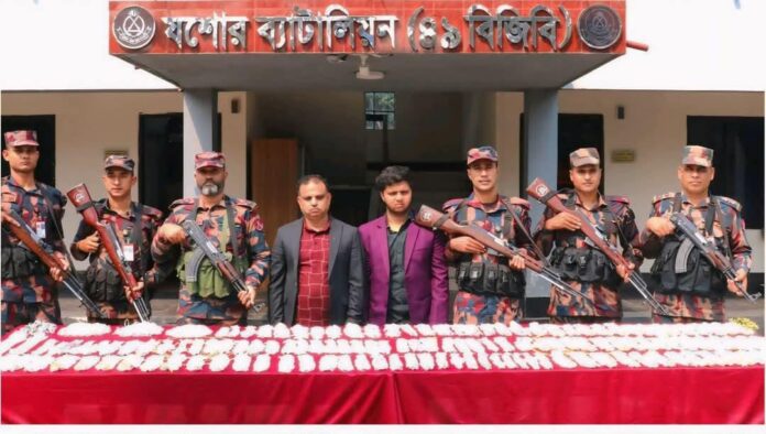 আটক দুইজন হলেন, যশোরের শার্শা থানার বাগআঁচড়ার বাগুড়ি গ্রামের মৃত কাসেম আলীর ছেলে জাহাঙ্গীর কবির লিটু (৪৮) ও একই এলাকার জাহাঙ্গীর কবির লিটুনের ছেলে মেহেদী হাসান (২৫)।