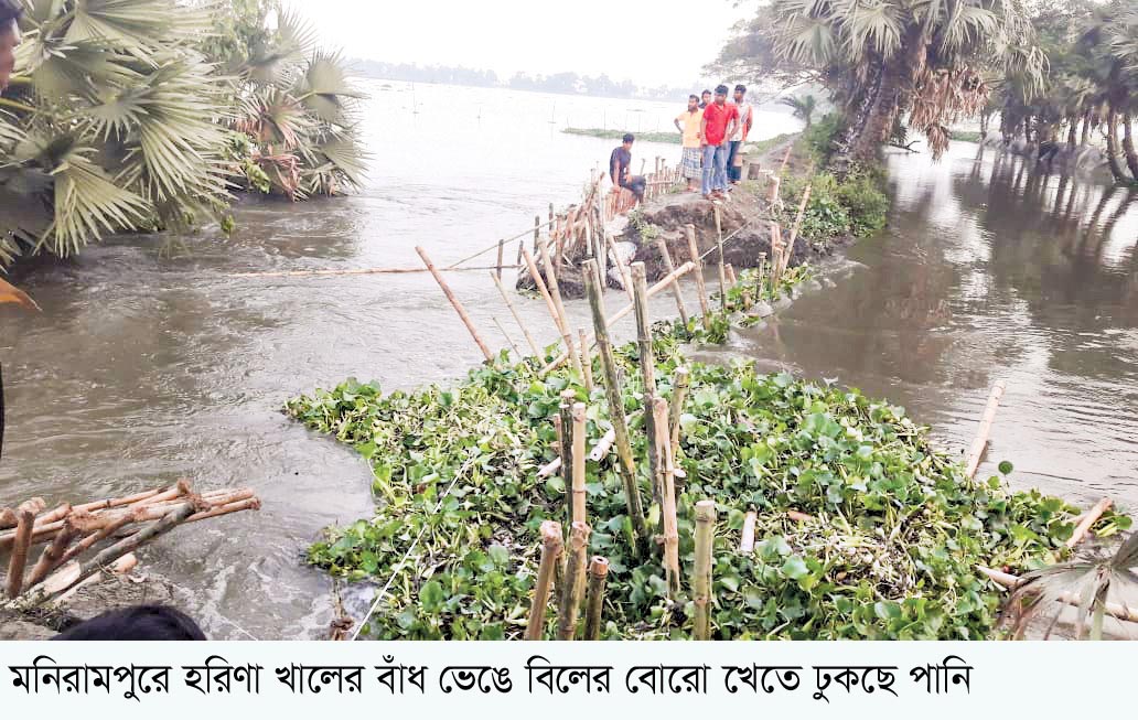 হেলাল উদ্দিন : যশোরের মনিরামপুর উপজেলার হরিণা খালের বাঁধ ভেঙে হাজার বিঘা বোরো