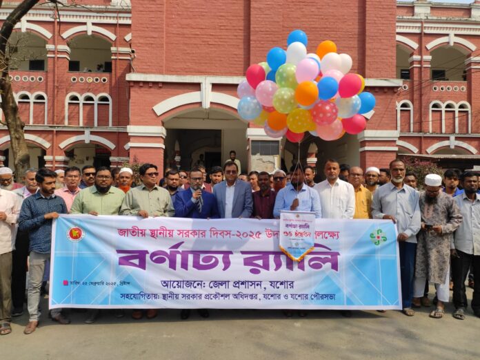 যশোর অফিস : ব্যানার, ফেস্টুন ও বেলুন উড়িয়ে যশোরে জাতীয় স্থানীয় সরকার দিবস পালিত হয়েছে। যশোরের ঐতিহ্যবাহী কালেক্টরেট চত্বরে দিবসটির শুভ উদ্বোধন ঘোষনা করেন যশোরের জেলা প্রশাসক আজাহারুল ইসলাম।এসময় যশোরে স্থানীয় সরকারের উপ পরিচালক রফিকুল হাসান, যশোর জেলা পরিষদের প্রধান নির্বাহী কর্মকর্তা আসাদুজ্জামান,প্রশাসনিক কর্মকর্তা এস এম শাহিন,এলজিইডির নির্বাহী প্রকৌশলী আহমেদ মাহাবুবুর রহমান, জনস্বাস্থ্য প্রকৌশল অধিদপ্তরের নির্বাহী প্রকৌশলী জাহিদ পারভেজ,এনডিসি মাহির দেয়ান আমিনসহ স্থানীয় সরকার মন্ত্রনালয়ের অধিনস্থ বিভিন্ন সরকারী বেসরকারী প্রতিষ্ঠানের প্রতিনিধিবৃন্দ উপস্থিত ছিলেন। উদ্বোধনী পর্ব শেষে জেলঅ প্রশাসকের নেতৃত্বে একটি র‍্যালী কালেক্টরেট চত্বর প্রদক্ষিণ করে। পরে দিবসটি স্মরণে কালেক্টরেট অমিত্রাক্ষর সভা কক্ষে এক আলোচনা সভার আয়োজন করা হয়।