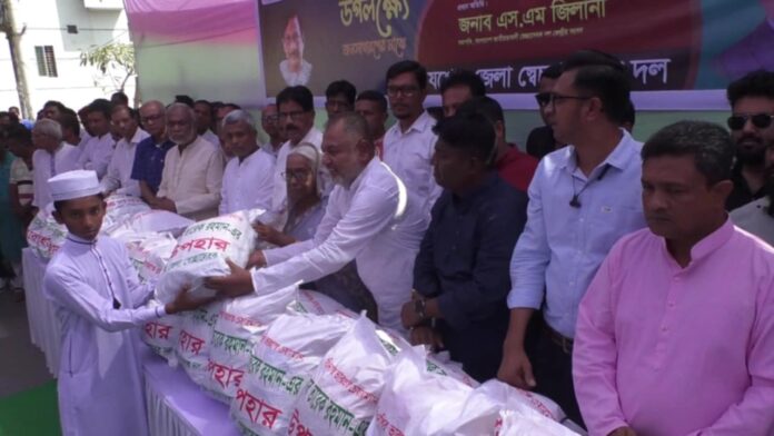 যশোর অফিস : মাহে রমজান উপলক্ষে জনসাধারণের মধ্যে ইফতার সামগ্রী বিতরণ করেছে জেলা স্বেচ্ছাসেবক দল। বিএনপির ভারপ্রাপ্ত চেয়ারম্যান তারেক রহমানের পক্ষে আজ বুধবার সকাল ১১টায় জেলা বিএনপির কার্যালয়ের সামনে এ সামগ্রী বিতরণ করা হয়। স্বেচ্ছাসেবক দলের কেন্দ্রীয় সভাপতি এস এম জিলানী প্রধান অতিথি হিসেবে ২৫০ জনের হাতে এ ইফতার সামগ্রী তুলে দেন।