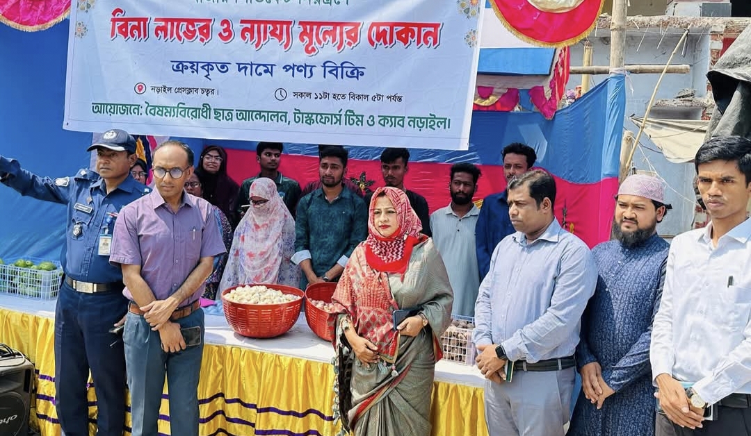 বৈষম্যবিরোধী ছাত্র আন্দোলন,জেলা টাস্কফোর্স টিম ও কনজুমারস এ্যসোসিয়েশন অব বাংলাদেশ-ক্যাব নড়াইল জেলা শাখার উদ্যোগে এই বিনা লাভের দোকানটি পরিচালিত হচ্ছে।