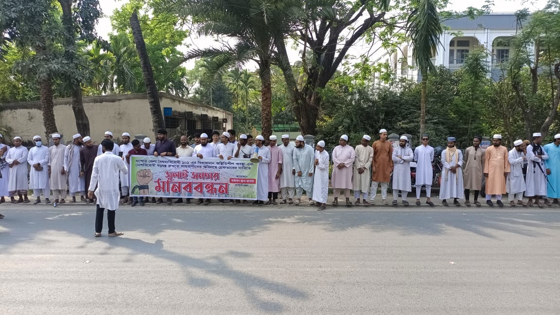 যশোরে সাধারণ ছাত্র জনতা যশোর জেলার আয়োজনে জুলাই জনতার মানববন্ধন অনুষ্ঠিত