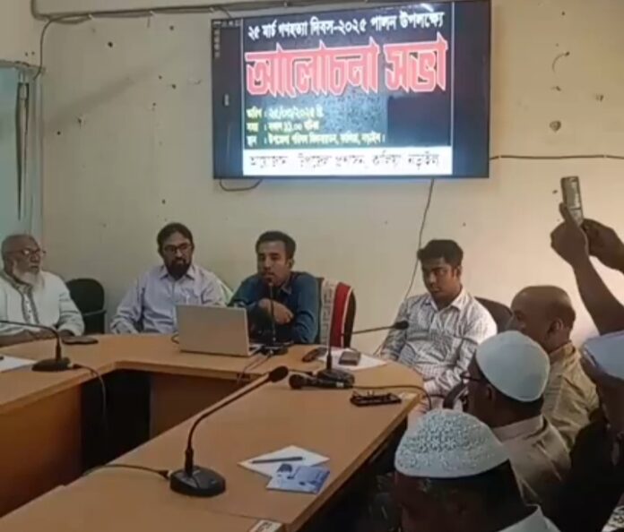 মো. বাবলু মল্লিক, কালিয়া (নড়াইল) প্রতিনিধি: নড়াইলে ২৫ মার্চ গণহত্যা দিবস ও ঐতিহাসিক মহান মুক্তিযুদ্ধ সম্পর্কে স্মৃতিচারণ ও আলোচনা সভা অনুষ্ঠিত হয়েছে। মঙ্গলবার উপজেলা সম্মেলন কক্ষে অনুষ্ঠিত স্মৃতিচারণ ও আলোচনা সভায় প্রধান অতিথি হিসেবে বক্তব্য দেন উপজেলা নির্বাহী অফিসার মো. রাশেদুজ্জামান।