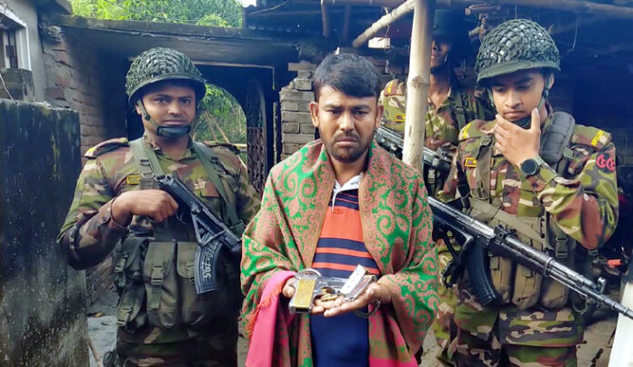 যৌথ বাহিনী সুত্রে জানা গেছে, গোপন সংবাদের ভিত্তিতে অস্ত্র উদ্ধারের লক্ষ্যে যৌথ বাহিনীর একটি দল লাল্টু বিশ্বাসের বাড়িতে অভিযান চালায়। এসময় মেড ইন ইউএসএ লেখা ১টি ৭.৬৫ এমএম পিস্তল, ৩ রাউন্ড গুলি এবং ২টি ম্যাগজিনসহ লাল্টু বিশ্বাসকে আটক করে যৌথ বাহিনী। তার বিরুদ্ধে অস্ত্র আইনে মামলা দায়ের পূর্বক সকালেই তাকে অস্ত্রসহ গাংনী থানা পুলিশের কাছে হস্তান্তর করা হয়েছে।