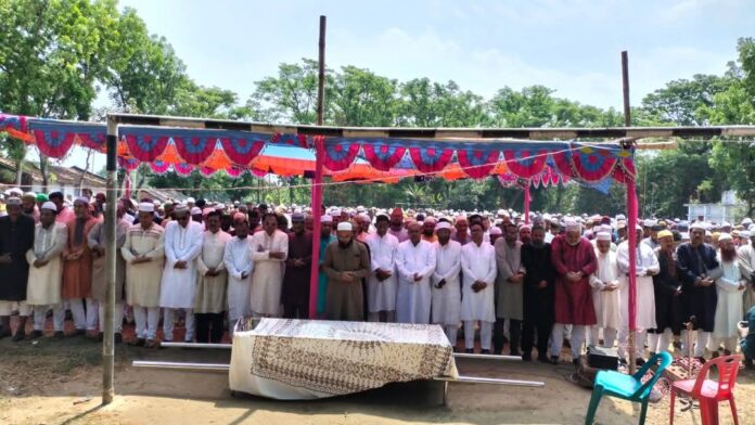 ভ্রাম্যমান প্রতিনিধি,ডুমুরিয়া : ডুমুরিয়ায় খর্ণিয়া ইউনিয়নের বারবার নির্বাচিত ইউপি চেয়ারম্যান ও ইউনিয়ন বিএনপির সভাপতি শেখ দেদারুল হোসেন দেদার বাবার কবরের পাশে চিরনিদ্রায় শায়িত হলেন। শুক্রবার সকাল সাড়ে দশটায় রানাই মহিলা দাখিল মাদ্রাসা মাঠে হাজার হাজার জনতার উপস্থিতিতে জানাজা নামাজ শেষে পারিবারিক কবরস্থানে তাকে দাফন করা হয়। তার মৃত্যুর খবরে সকাল থেকেই জানাজায় শরিক ও শেষ শ্রদ্ধা জানাতে জনতার ঢল নামে। সকাল দশটা বাজতে বাজতে সকল শ্রেণী পেশার মানুষের উপস্থিতিতে পুরো মাদ্রাসা মাঠ কানায় কানায় পূর্ণ হয়ে যায়। কমতি ছিল না নারী ও হিন্দু সম্প্রদায়ের মানুষের উপস্থিতি। তারা রাস্তার পাশে দাঁড়িয়ে অঝোরে কাঁদতে থাকে প্রিয় চেয়ারম্যানকে হারিয়ে। জানাজা নামাজে উপস্থিত ছিলেন উপজেলা সহকারী কমিশনার ভূমি মোঃ আসাদুর রহমান, থানা অফিসার ইনচার্জ মোঃ মাসুদ রানা, খুলনা মহানগর বিএনপির আহবায়ক এ্যাডভোকেট শফিকুল আলম মনা, সদস্য সচিব শফিকুল ইসলাম তুহিন, জেলা বিএনপির আহবায়ক মনিরুজ্জামান মন্টু, যুগ্ম আহবায়ক এ্যাডভোকেট মোমরেজুল ইসলাম, সাবেক সদস্য সচিব মনিরুল হাসান বাপ্পী, যুবদলের আহবায়ক ইবাদুল হক রুবায়েদ, বিএনপি নেতা খায়রুল ইসলাম মোল্লা, মোল্যা মোশাররফ হোসেন মফিজ, শেখ সরোয়ার হোসেন, সরদার আব্দুল মালেক, শেখ হাফিজুর রহমান, মোল্লা মাহাবুবুর রহমান, মশিউর রহমান লিটন, শেখ ফরহাদ হোসেন, ইউপি চেয়ারম্যান শেখ হেলাল উদ্দিন, বিএম জহুরুল হক, প্রভাষক মঞ্জুর রশিদ, জামায়াত নেতা মিয়া গোলাম কুদ্দুস, মাওলানা মুখতার হুসাইন, হেফাজত নেতা মাওলানা মোস্তাক আহমেদ, মুফতি আব্দুল কাইয়ুম জমাদ্দার, শেখ শাহিনুর রহমানসহ প্রশাসন, রাজনৈতিক, সামাজিক, সাংস্কৃতিক, গ্রামপুলিশ ও শিক্ষা প্রতিষ্ঠান নেতারা।
