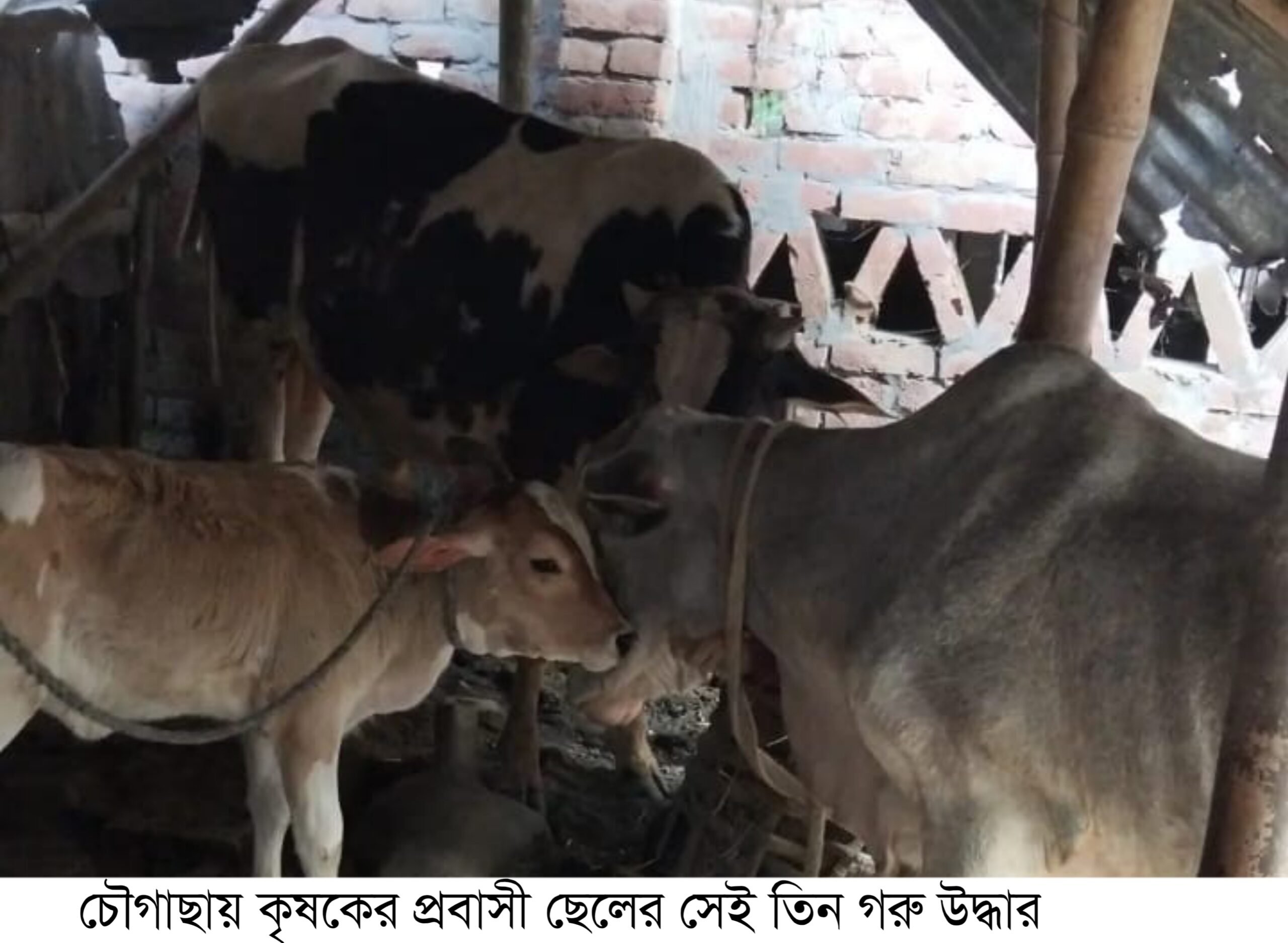 রায়হান হোসেন, চৌগাছা পৌর প্রতিনিধি : যশোরের চৌগাছায় চাঞ্চল্যকর কৃষকের সামনে থেকে প্রবাসী ছেলের গরু ছিনিয়ে নেওয়ার ঘটনায় দৃষ্টান্তমূলক পদক্ষেপ নিয়েছে থানা পুলিশ। মাত্র একদিনের ব্যবধানে উপজেলার দেবালয় পশ্চিম মাঠ থেকে জোরপূর্বক নিয়ে যাওয়া তিনটি গরু উদ্ধার করে প্রকৃত মালিকের কাছে হস্তান্তর করেছে পুলিশ। রোববার (১৩ এপ্রিল) দুপুরে চৌগাছা থানার ভারপ্রাপ্ত কর্মকর্তা (ওসি) আনোয়ার হোসেনের নেতৃত্বে গরুগুলো উদ্ধার করা হয়। পরে স্থানীয় গণ্যমান্য ব্যক্তিবর্গের উপস্থিতিতে গরুগুলো মালিক কৃষক ওমর আলীর জিম্মায় দেওয়া হয়। ভুক্তভোগী ওমর আলী চোখের পানি মুছে বলেন, “আল্লাহর রহমতে গরুগুলা ফিরে পাইছি। আমি থানার ওসি স্যারের প্রতি কৃতজ্ঞ, উনি না থাকলে গরুগুলা পেতাম না।” খবর শুনে প্রবাস থেকে মোবাইলে যোগাযোগ করেন গরুর প্রকৃত মালিক ওমর আলীর ছোট ছেলে। কান্নাজড়িত কণ্ঠে তিনি বলেন, “বিদেশে কষ্ট করে টাকা পাঠাইছি গরু পালনের জন্য। যখন শুনলাম গরু নিয়া গেছে, বুকটা ফেটে গেছিল। আজ গরুগুলা ফিরছে, শান্তি লাগতেছে। সাংবাদিক ভাইদের আর পুলিশকে অসংখ্য ধন্যবাদ।”