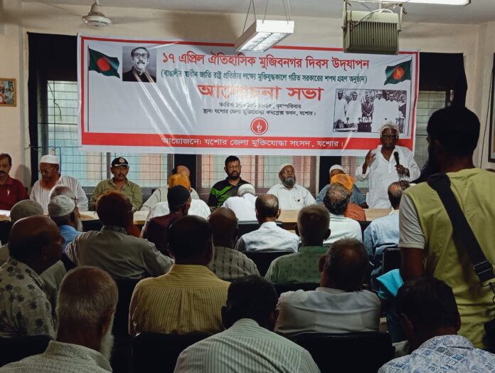 যশোর অফিস : ১৭ এপ্রিল ঐতিহাসিক মুজিবনগর দিবস উপলক্ষে যশোর জেলা মুক্তিযোদ্ধা সংসদের উদ্যোগে এক আলোচনা সভা অনুষ্ঠিত হয়েছে। সকাল ১১টা থেকে দুপুর ১২টা ২০ মিনিট পর্যন্ত যশোর জেলা মুক্তিযোদ্ধা কমপ্লেক্সের তৃতীয় তলার হলরুমে এ সভা অনুষ্ঠিত হয়।