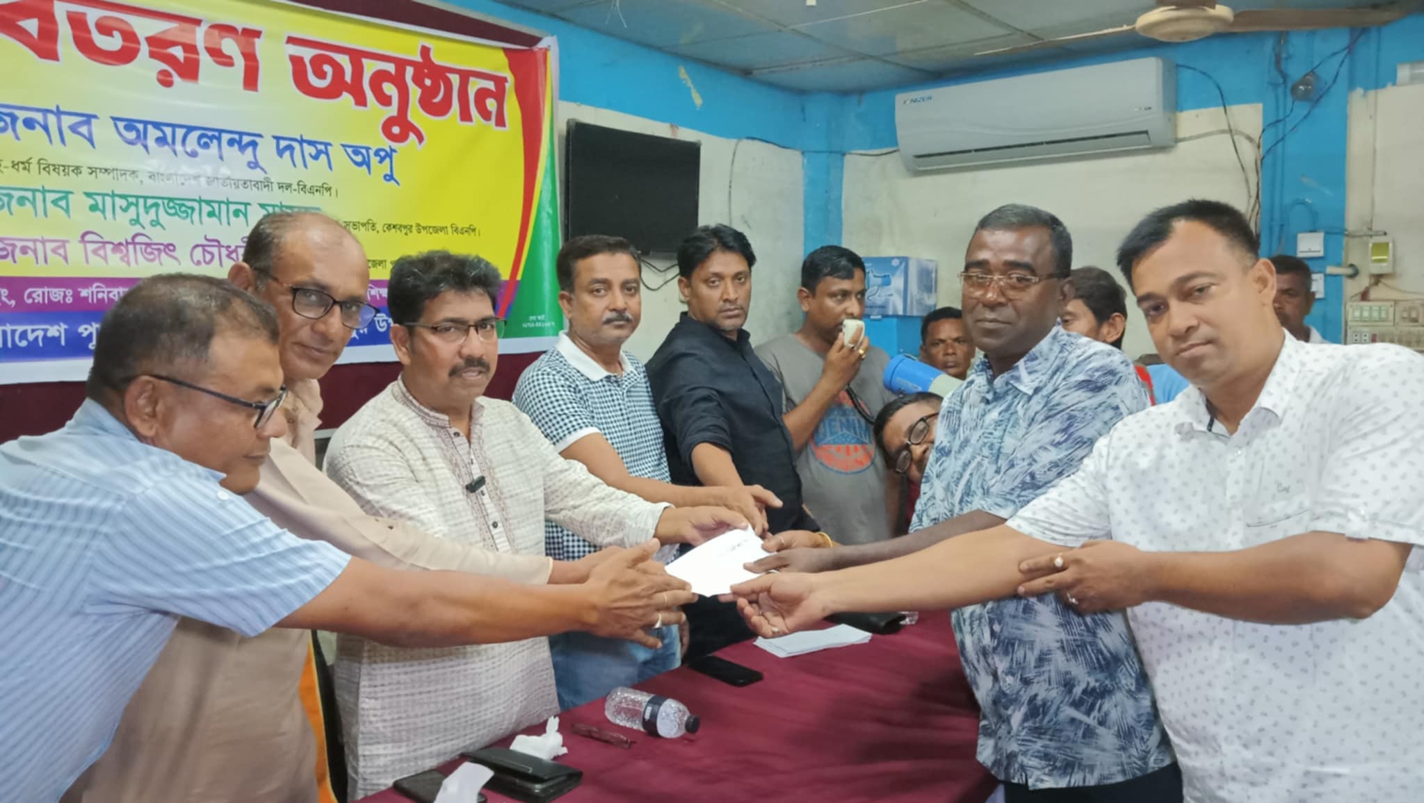উপজেলা পূজা উদযাপন ফ্রন্টের আহবায়ক বিশ্বজিৎ চৌধুরী অনুষ্ঠানের সভাপতিত্ব করেন। সংগঠনের সদস্য সচিব উৎপল দে’র পরিচালনায় অনুষ্ঠানে বিশেষ অতিথির বক্তব্য দেন, উপজেলা বিএনপির সহসভাপতি মাসুদুজ্জামান মাসুদ, পৌর যুবদলের আহবায়ক গোলাম মোস্তফা ও যুবদল নেতা জাহাঙ্গীর কবির মিন্টু। এ সময় বক্তব্য দেন পৌর কমিটির আহ্বায়ক মলয় বসু, ফ্রন্ট নেতা তাপস দাস,চন্দন সরকার, চিরজ্ঞিত শীল প্রমূখ ফ্রন্টের নেতৃবৃন্দ বক্তব্য দেন।