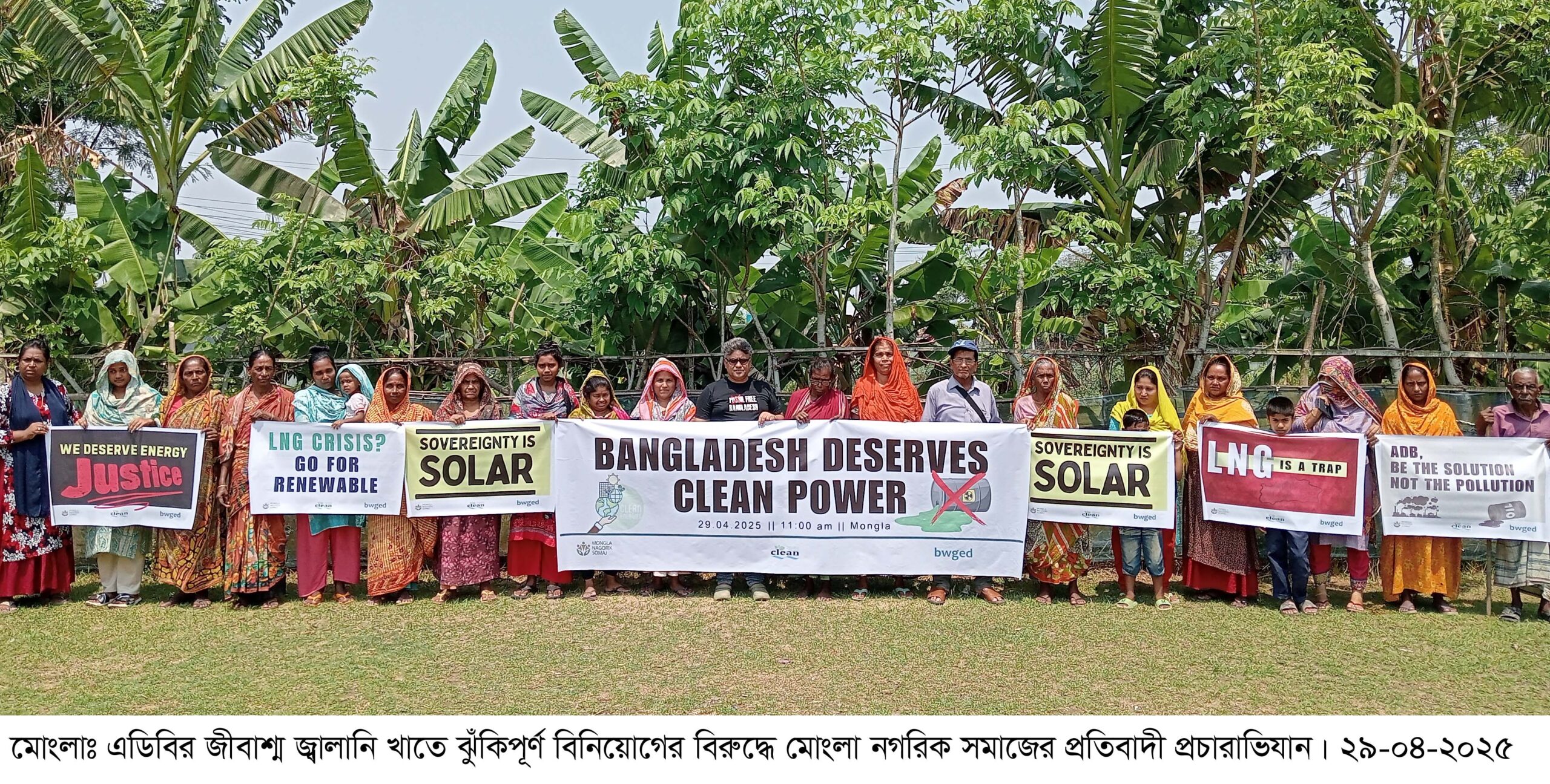মঙ্গলবার সকাল ১১টায় প্রতিবাদী প্রচারাভিযানে সভাপতিত্ব ও প্রধান অতিথির বক্তৃতা করেন মোংলা নাগরিক সমাজের আহ্বায়ক সাবেক উপজেলা ভাইস চেয়ারম্যান মোঃ নূর আলম শেখ। প্রতিবাদী প্রচারাভিযানে বক্তব্য রাখেন নাগরিক নেতা পরিবেশযোদ্ধা মোঃ হাছিব সরদার, নারীনেত্রী ছবি হাজরা, আইরিন বিশ্বাস, ইয়ুথ লিডার মেহেদী হাসান, রোজি বিশ্বাস, বিভা বিশ্বাস নাগরিক নেতা অসীম বিশ্বাস, সঞ্জিত বিশ্বাস প্রমূখ। প্রতিবাদী প্রচারাভিযানে প্রধান অতিথির বক্তৃতায় মোংলা নাগরিক সমাজের আহ্বায়ক পরিবেশযোদ্ধা মোঃ নূর আলম শেখ বলেন এডিবি বাংলাদেশের বিদ্যুৎ খাতে মোট ৪.৮৮ বিলিয়ন ডলার বিনিয়োগ করেছে। এরমধ্যে ৮২.৯% চলে গেছে জীবাশ্ম জ্বালানি প্রকল্পে, সৌর বিদ্যুৎ মাত্র ২.৫৫% এবং বায়ু শক্তিতে কোন বিনিয়োগই হয়নি। যেখানে প্রতি মেগাওয়াট সৌর বিদ্যুতে বিনিয়োগের খরচ ০.৫১ মিলিয়ন ডলার, সেখানে জীবাশ্ম জ্বালানিভিত্তিক প্রকল্পে প্রতি মেগাওয়াটে ২.০৪ মিলিয়ন ডলার ব্যয় করা হচ্ছে। নাগরিক নেতা হাছিব সরদার বলেন খুলনার ১৫০ মেগাওয়াটের গ্যাস টারবাইন বিদ্যুৎকেন্দ্রকে ২২৫ মেগাওয়াট কম্বাইড সাইকেল প্রকল্পে উন্নীত করতে এডিবি অতিরিক্ত ১০৪.১১ মিলিয়ন ডলার বিনিয়োগ করেছে। তবু ্ও গত ১১ বছরে এই প্রকল্পের জন্য সরকারকে ১,৮২৪ কোটি টাকা ব্যয় করতে হয়েছে। অন্যদিক রূপসায় ৮০০ মেগাওয়াটের এলএনজি ভিত্তিক বিদ্যুৎকেন্দ্র নির্মান প্রায় শেষ হলেও সেখানে গ্যাস সরবরাহের নিশ্চয়তা নেই। এরফলে এই প্রকল্পও অচল সম্পদে পরিণত হবে এবং সরকারকে হাজার হাজার কোটি টাকা ক্যাপাসিটি চার্জ দিতে হবে। উল্ল্যেখ্য আগামি ৪-৬ মে ইতালির মিলান শহরে এডিবির অনুষ্ঠিতব্য ৫৮তম বার্ষিক সভার প্রাক্কালে শুধু মোংলা নয়, বাংলাদেশসহ দক্ষিণ এশিয়ার বিভিন্ন শহরে নাগরিক সমাজের প্রতিবাদ আরো জোরালো হচ্ছে, যাতে উন্নয়ন সংস্থাগুলো তাদের বিনিয়োগ নীতিতে জলবায়ু ন্যায্যতা ও টেকসই উন্নয়নের গুরুত্ব অনুধাবন করে।###