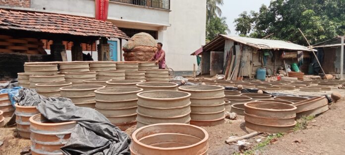 মোস্তাফিজুর রহমান,কোটচাঁদপুর প্রতিনিধি : আমরা কষ্টসাধ্য করেও বাপ দাদার ঐতিহ্য ধরে রেখেছি। আমাদের সন্তানেরা ধরে রাখতে চাই না। আগের মত আর চাহিদা নেই মাটির পণ্যের। এ পেশা ছেড়ে অন্য পেশায় জড়িয়ে পড়েছে অনেকে।গনমাধ্যম কর্মীর সাথে কথা গুলো বলছিলেন বাজেবামনদা পাল পাড়ার ষাট উর্ধ বত্তে পাল।আধুনিকতার ছোয়ায় হারিয়ে যেতে বসেছে ঝিনাইদহের কোটচাঁদপুর উপজেলার মৃৎশিল্প। কিন্তু অস্তিত্ব সংকটে পড়লেও বাপ-দাদার পেশা ধরে রেখেছেন মৃৎ শিল্পীরা একসময় কুমার পাড়াগুলো মাটির কাঁচা গন্ধে থাকত মাতোয়ারা। ব্যাস্ত কুমাররা হিম- শিম খেতেন চাহিদা মেটাতে। হাট বাজারে মাটির তৈরি জিনিস দিয়ে পসরা সাঁজিয়ে বসতেন মৃৎ শিল্পিরা। নিত্য প্রয়োজনীয় জিনিস ছাড়াও শিশুদের খেলনা,সৌন্দর্য বর্ধন সামগ্রীসহ বিভিন্ন বাহারি মাটির তৈরীপাত্র থাকত কুমারপাড়া।তখনকার প্রতিযোগিতার বাজারে বস্তুকে আকর্ষিত করতে দৃষ্টিনন্দিত আলপনার ছোঁয়াও দেওয়া হত। কিন্তু আজ এ সকল সবই অতীত হয়ে যাচ্ছে। গাঁয়ের কুমার পাড়ায় আর কাঁচা মাটির গন্ধ পাওয়া যায় না। আধুনিক সব প্রক্রিয়াজাত থালা বাসন আর প্রয়োজনীয় বস্তুতে হারিয়ে গেছে মাটির গন্ধ।কোটচাঁদপুর উপজেলা ইতিহাস ঐহিত্য নিয়ে গঠিত উপজেলা। এই উপজেলায় নানান ইতিহাস লুকিয়ে আছে। এদের মধ্যে মৃৎ শিল্পের অবাদানও অন্যতম। সময়ের পরিক্রমায় মৃৎ শিল্পের অস্তিত্ব সংকটে পড়লেও প্রায় দুই শতাধিক পরিবার এখনো এই শিল্পের সাথে জড়িতে থেকে বাপ দাদার পেশা ধরে রেখে জীবিকা নির্বাহ করে চলেছে। এমনি পরিবার দেখা মিললো পৌর এলাকার ৭ নং ওয়াডের পাল পাড়ায় গিয়ে শ্রী বুদো কুমার পালের সঙ্গে । দুপুর গড়ালেও মাটির জিনিসপত্র তৈরীরে ব্যস্ত সময় পার করছেন। চাকা ঘুরিয়ে শিল্পীর নিপুন হাতে তৈরী করছেন হরেক রকমের পাতিল।একবাড়ীতে একাধিক জন আবারও কখনো বাড়ীর মহিলারা পুরুষদের সঙ্গে কাজ করে সহযোগিতা করছেন।মৃৎ শিল্পীরা জানান ৩০-৩২ বছরেরও অধিক সময় ধরে এই শিল্পের সাথে জড়ীতে থেকে পেশাটিকে ধরে রেখেছে। অনেক কষ্ট করে হলেও এই পেশা ধরে রেখেছে। কিন্তু আধুনিকাতর ছোয়ায় প্লাস্টিক দ্রব্যের ব্যবহার বেড়ে যাওয়ার কারণে মাটির পাতিলের চাহিদা কুমে গেছে। ফলে এক রকম ঢিলেঢালা ভাবেই ব্যবসায় করে জীবিকা নির্বাহ করে যাচ্ছেন। বাবার রেখে যাওয়া পেশা ধরে রেখেছেন শ্রী নেপাল পাল। তিনিও জানান প্লাস্টিক আর বাড়ী বাড়ী ফ্রিজের ব্যবহারের কারণে থালা,কলস এসব পাত্রের আর চাহিদা নেই। দইয়ের কাতারী, রুটি খোলা, কুয়োর পাট তৈরী করে আয় করছেন তারা। এসব তৈরী কৃত মালামাল পাইকারি দরে বাসা হতেই নিয়ে যায় মহাজনরা। বাবা মায়ের বাড়ী হতে শিখে আসা কাজ স্বামীর সংসারে এসেও করে চলেছে শ্রী জগা পালের স্ত্রী। 