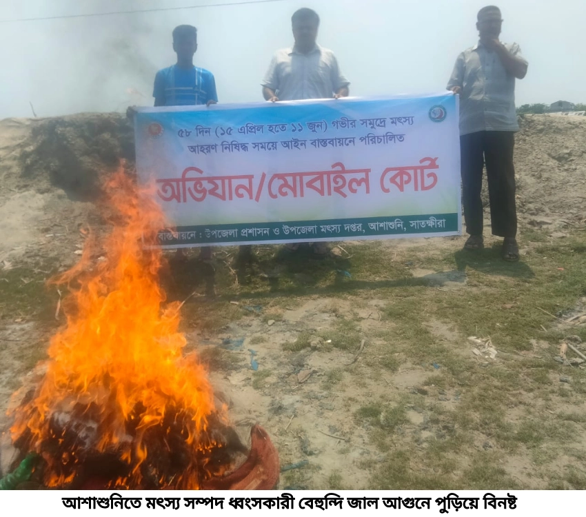 এম এম সাহেব আলী আশাশুনি প্রতিনিধি: আশাশুনিতে বিভিন্ন নদ-নদীতে মৎস্য সম্পদ ধ্বংসকারী বেহুন্দি ও অন্যান্য ক্ষতিকর অবৈধ জাল নির্মূলে (১৫ এপ্রিল থেকে ১১জুন) পর্যন্ত ৫৮দিন সাগরে মৎস্য আহরণ নিষিদ্ধ সময়ে আইন বাস্তবায়নে মোবাইল কোর্ট পরিচালনা করা হয়েছে। (৮মে ২০২৫) বৃহস্পতিবার বেলা ১১টায় উপজেলা প্রশাসন ও মৎস্য অধিদপ্তরের আয়োজনে আশাশুনি উপজেলার খোলপেটুয়া নদীতে অভিযান পরিচালনা করেন উপজেলা সিনিয়র মৎস্য কর্মকর্তা সত্যজিৎ মজুমদার। এ সময় নদী হতে অবৈধ ০৩টি বেহুন্দি জাল আটক করা হয় যার বাজার মূল্য প্রায় ১লক্ষ ৫০হাজার টাকা। আটককৃত জাল মানিকখালী ব্রিজের পাসে নদীর চরে আগুনে পুড়িয়ে বিনষ্ট করা হয়।