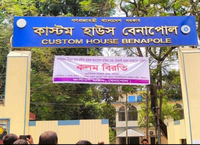 বেনাপোল থেকে এনামুল হকঃ বেনাপোল কাস্টমস হাউজে চলমান কলম বিরতির মধ্য দিয়ে রাজস্ব কর্মকর্তা ও কর্মচারীরা তাদের আন্দোলন অব্যাহত রেখেছেন। তাদের প্রধান দাবি হলো—জাতীয় রাজস্ব বোর্ড (এনবিআর) বিলুপ্ত করে অর্থ মন্ত্রণালয়ের সরাসরি নিয়ন্ত্রণে একটি নতুন ও টেকসই রাজস্ব কাঠামো গঠন করা।