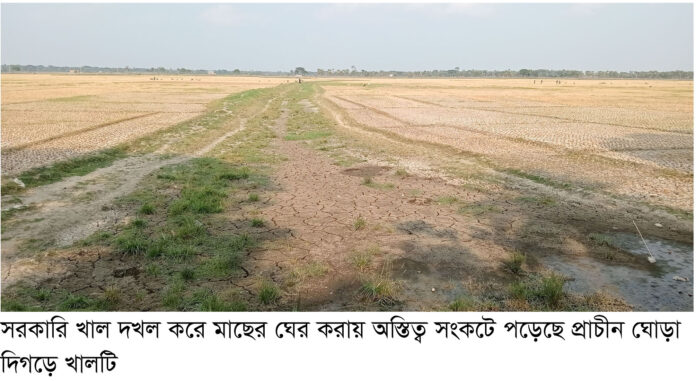 সরকারি ঘোড়া দিগড়ে খালটি দখল করে মাছের ঘের হিসেবে ব্যবহার করে আসছে। ওই