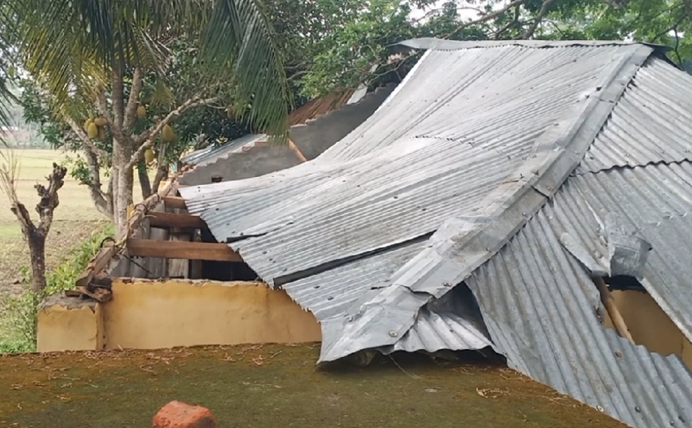 মোস্তাফিজুর রহমান আপেল, কোটচাঁদপুর প্রতিনিধি : ঝিনাইদহের কোটচাঁদপুরে কালবৈশাখী ঝড়ের তাণ্ডবে উড়ে গেছে কুশনা ইউনিয়ন এর বহরমপুর মাধ্যমিক বিদ্যালয় এর টিনের ছাউনি। শনিবার (১৭ই মে) সন্ধ্যায় হঠাৎ আকাশে কালো মেঘ করে। এর কিছুক্ষণ পরই শুরু হয় ঝড় ও বৃষ্টি। এতে স্কুলটির শ্রেনী কক্ষের টিনের ছাউনির চাল গুলো উড়ে যায়।