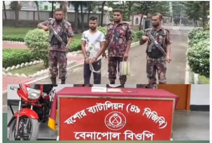রোববার (১৮ মে) বিজিবি সদস্যরা জানান,১৭ মে ২০২৫ তারিখ ২০৪০ ঘটিকায় যশোর ব্যাটালিয়ন (৪৯ বিজিবি) এর বেনাপোল বিওপি’র একটি টহলদল গোপন সংবাদের ভিত্তিতে বেনাপোল গাজীপুর জামে মসজিদের সামনে পাকা রাস্তার উপর হতে ১ জন আসামীসহ ৫০০ গ্রাম হেরোইন এবং ১টি মোটরসাইকেলসহ আটক করে।