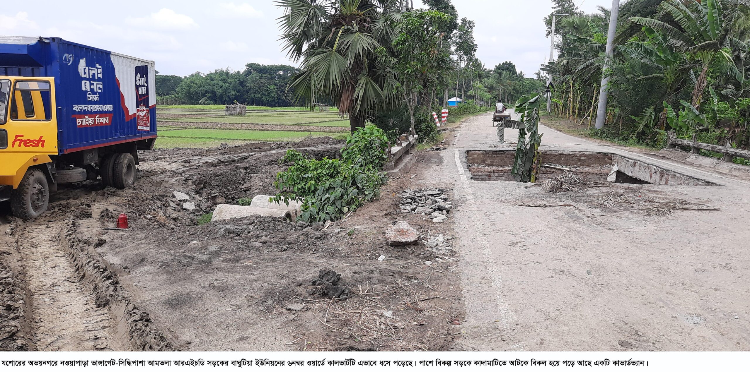 পাটবোঝাই ট্রাক নওয়াপাড়ায় যাওয়ার সময় কালভার্টের ক্ষতি করে। ওইদিন রাতে