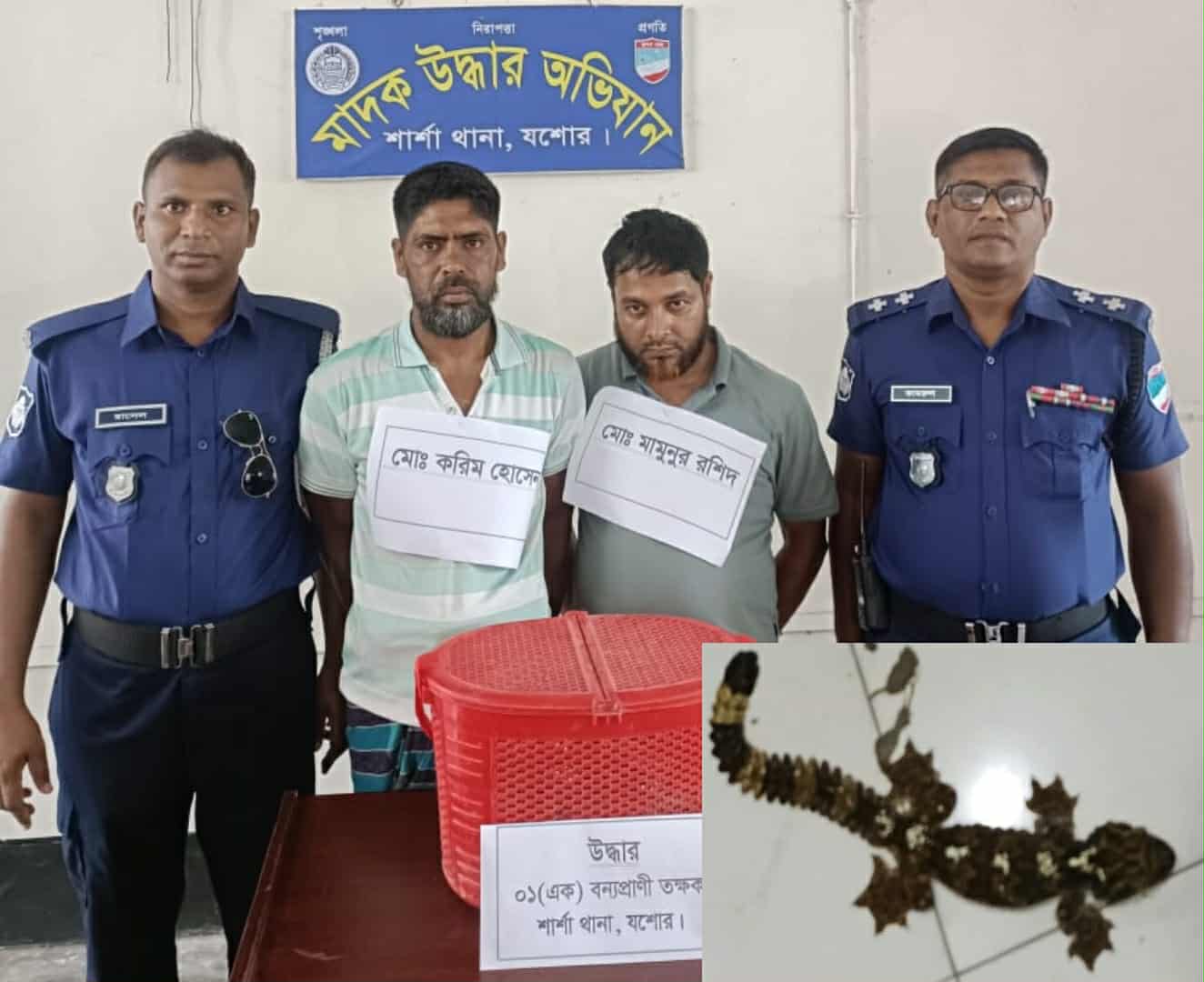 যশোর অফিস : শার্শা থানা পুলিশ অভিযান চালিয়ে একটি বন্যপ্রাণী তক্ষক সাপসহ দুইজনকে গ্রেফতার করেছে।
