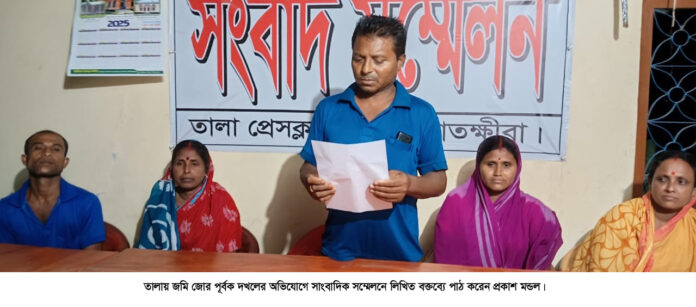 তালা (সাতক্ষীরা) প্রতিনিধি : সাতক্ষীরার তালায় সংখ্যালঘু সম্প্রদায়ের তিন পুরুষের পৈত্রিক সম্পত্তি জোরপূর্বক দখল করে নিয়েছেন ঘোষনগর গ্রামের মৃত্য নাজের আলী শেখের ছেলে আব্দুর রাজ্জাক শেখ। এঘটনায় তালা প্রেসক্লাবে সাংবাদিক সম্মেলন করেছেন ভূক্তভোগী পরিবারটি। সাংবাদিক সম্মেলনে লিখিত বক্তব্য পাঠ করেন, ঘোষনগর গ্রামের নিরাপদ মন্ডলের ছেলে প্রকাশ মন্ডল। ভূক্তভোগী পরিবারের সদস্য বিকাশ মন্ডল, সুজয় মন্ডল, রবীন মন্ডল, সবুজ মন্ডল, তপতী মন্ডল, রিম্পা মন্ডল ও নলিতা মন্ডল এসময় উপস্থিত ছিলেন।