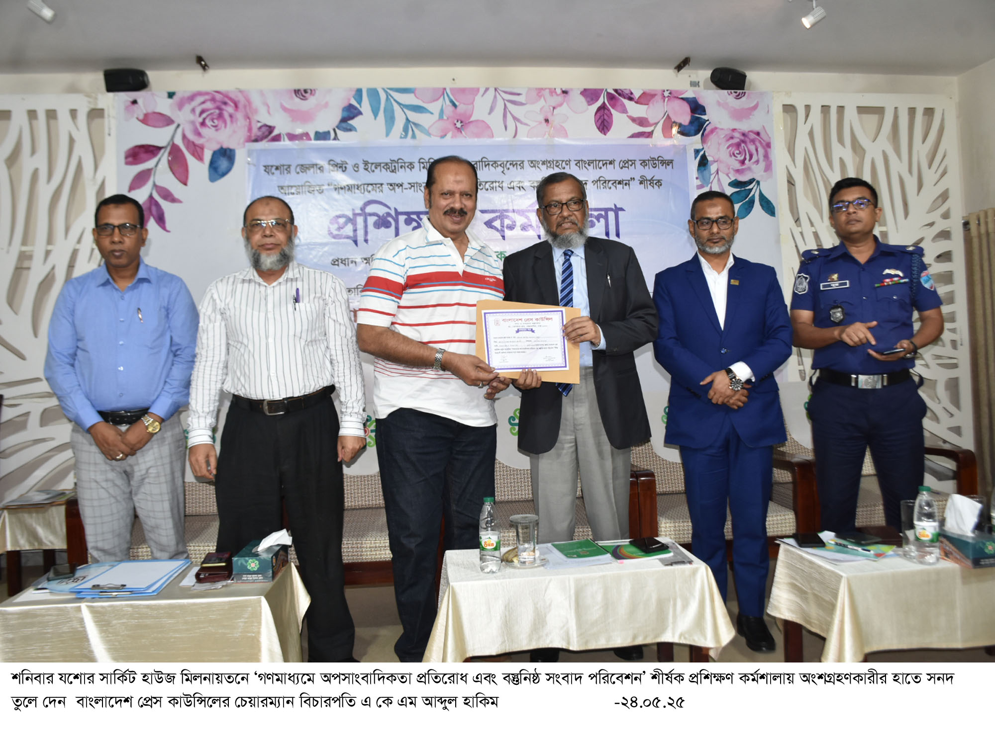 কর্মশালায় সভাপতিত্ব করেন যশোরের জেলা প্রশাসক মো.আজাহারুল ইসলাম। বিশেষ অতিথি ছিলেন প্রেস কাউন্সিলের সচিব আব্দুস সবুর।