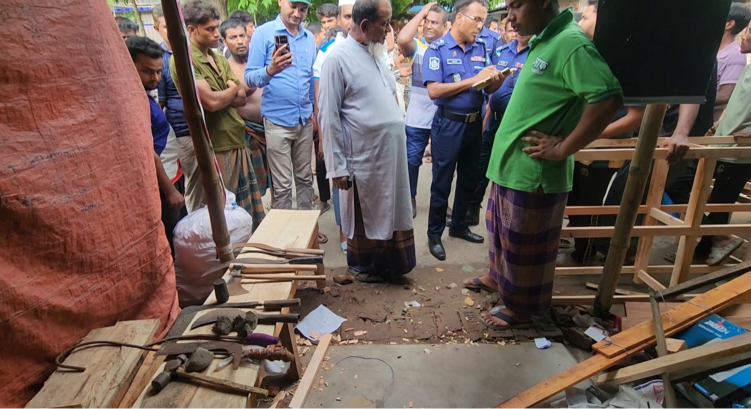 স্থানীয়রা জানায়, শিবনগর মন্দিরের পাশে আক্তার হোসেনের একটি দোকান ভাড়া নেয় রুবেল হোসেন। সেই দোকানে আসবাবপত্রের কাজ চলছিল। সোমবার সকালে তুচ্ছ ঘটনায় চঞ্চল নামে একজনকে মারধর করে রুবেল হোসেন। এরপর তার দোকান থেকে ধারালো অস্ত্র উদ্ধার করে স্থানীয়রা। উদ্ধারের সময় রুবেল হোসেনের মা দোকানে উপস্থিত ছিল। পরে পুলিশকে খবর দিলে তারা ঘটনাস্থলে আসে।