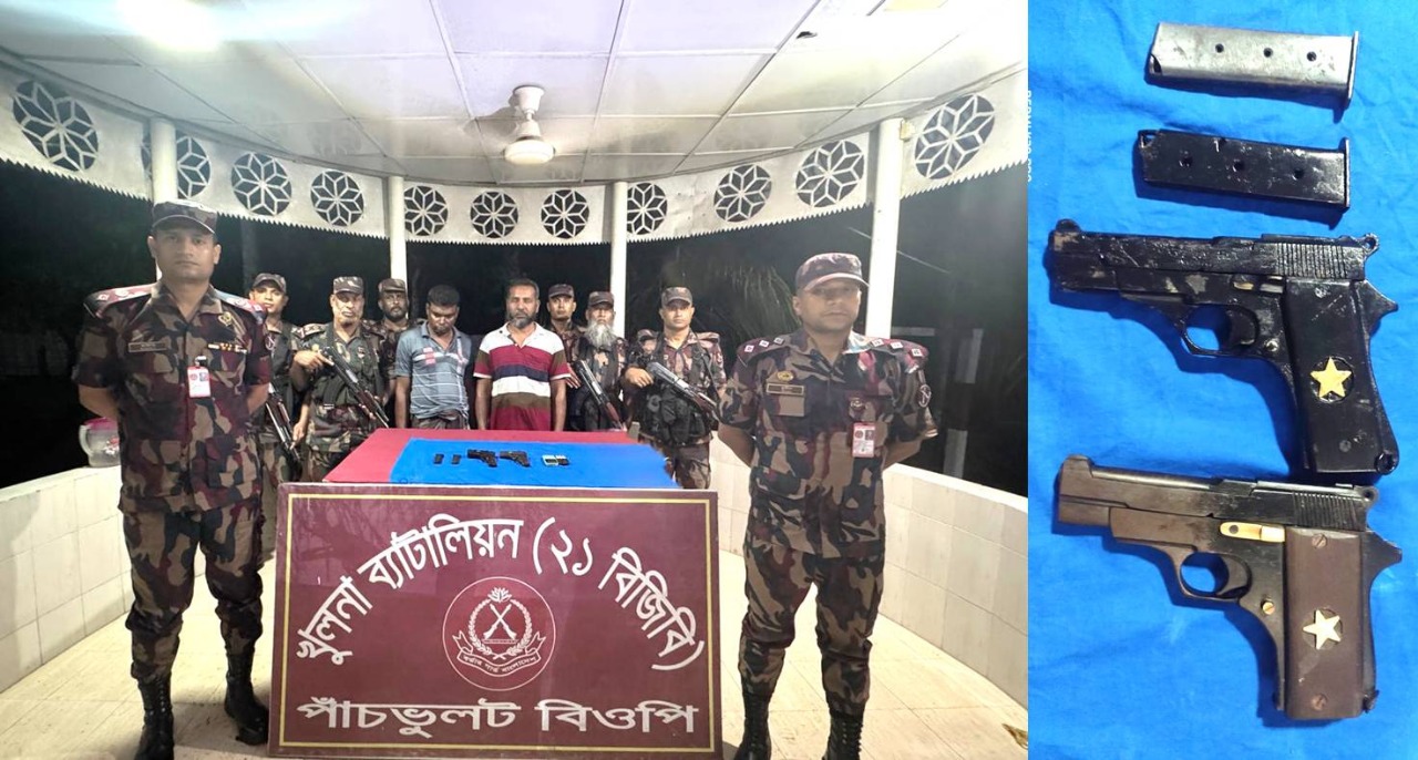যশোর সীমান্তে দায়িত্বে থাকা বিজিবির খুলনা ২১ ব্যাটালিয়নের অধিনায়ক লেফটেন্যান্ট কর্নেল মো. খুরশীদ আনোয়ার জানান, গোপন সংবাদের ভিত্তিতে অভিযানে পিস্তলগুলো মাটির নিচে লুকানো অবস্থায় উদ্ধার করা হয়। উদ্ধারকৃত মালামালের আনুমানিক মূল্য ২ লাখ ২০ হাজার টাকা।