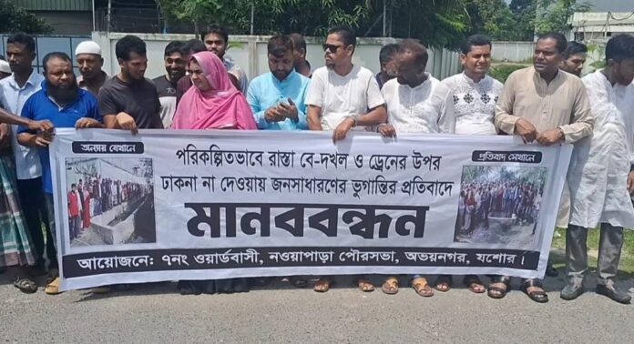 অভয়নগরে সড়ক সংস্কারের দাবিতে মানববন্ধন