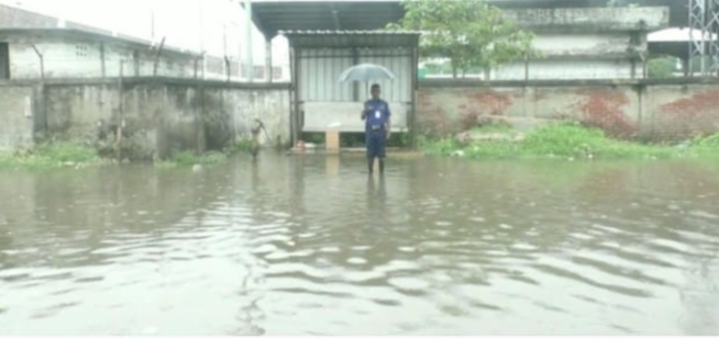 বেনাপোল থেকে এনামুল হকঃ গত দুই তিন দিনের টানা বৃষ্টিতে বেনাপোল স্থলবন্দরের কার্যক্রম মারাত্মকভাবে ব্যাহত হচ্ছে। বন্দরের বিভিন্ন ইয়ার্ড ও গুদামে হাঁটুপানি জমে থাকায় পণ্য খালাস ও পরিবহন কার্যক্রমে বিপর্যয় নেমে এসেছে। এই অবস্থায় কয়েকটি প্রবেশগেট সাময়িকভাবে বন্ধ করে দিয়েছে কর্তৃপক্ষ। অপরিকল্পিত উন্নয়ন ও পানি নিষ্কাশনের ব্যবস্থা না থাকায় এই অবস্থার সৃষ্টি হয়েছে বলছেন ব্যবসায়ীরা। জলাবদ্ধতার কারণে বন্দর কর্তৃপক্ষ বলছে, রেল কর্তৃপক্ষ কালভার্ট না রেখে মাটি ভরাট করায় পানি নিষ্কাশন বাধাগ্রস্ত হচ্ছে।
