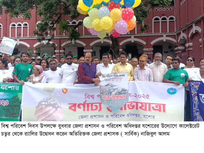 স্টাফ রিপোর্টার : নানা আয়োজনে যশোরে বিশ^ পরিবেশ দিবস উদযাপন করা হয়েছে। অনুষ্ঠানের মধ্যে ছিল, র্যালি, আলোচনা সভা ও পুরস্কার বিতরণী অনুষ্ঠান। প্লাস্টিক দূষন আর নয়, বন্ধ করার এখনি সময় প্রতিপাদ্যে জেলা পরিবেশ অধিদপ্তরের উদ্যোগে কালেক্টরেট সভা কক্ষ অমিত্রাক্ষরে আলোচনা সভার আয়োজন করা হয়। সভায় প্রধান অতিথির বক্তব্য রাখেন অতিরিক্ত জেলা প্রশাসক (সার্বিক) নাজিবুল আলম। বিশেষ অতিথির বক্তব্য রাখেন অতিরিক্ত পুলিশ সুপার(ক-সার্কেল) আহসান হাবীব, সিভিল সার্জন ডাক্তার মাসুদ রানা, প্রেসকাব যশোরের সভাপতি জাহিদ হাসান টুকুন। জেলা পরিবেশ অধিদপ্তরের উপপরিচালক ইমদাদুল হকে সভাপতিত্ব মূল প্রবন্ধ উপস্থাপন করেন যশোর বিজ্ঞান ও প্রযুক্তি বিশ^বিদ্যালয়ের অধ্যাপক( সিডিএম) মাহফুজুর রহমান, বক্তব্য রাখেন পরিবেশ অধিদপ্তরের রিসোর্স অফিসার সৌমেন মিত্র, শিক্ষক আবু তাহির মুহাম্মদ মিসবাহ, সদর উপজেলা বৈষশ্য বিরোধী ছাত্র আন্দোলনের যুগ্ম আহবায়ক রিয়াজ তাহসিন প্রমুখ।