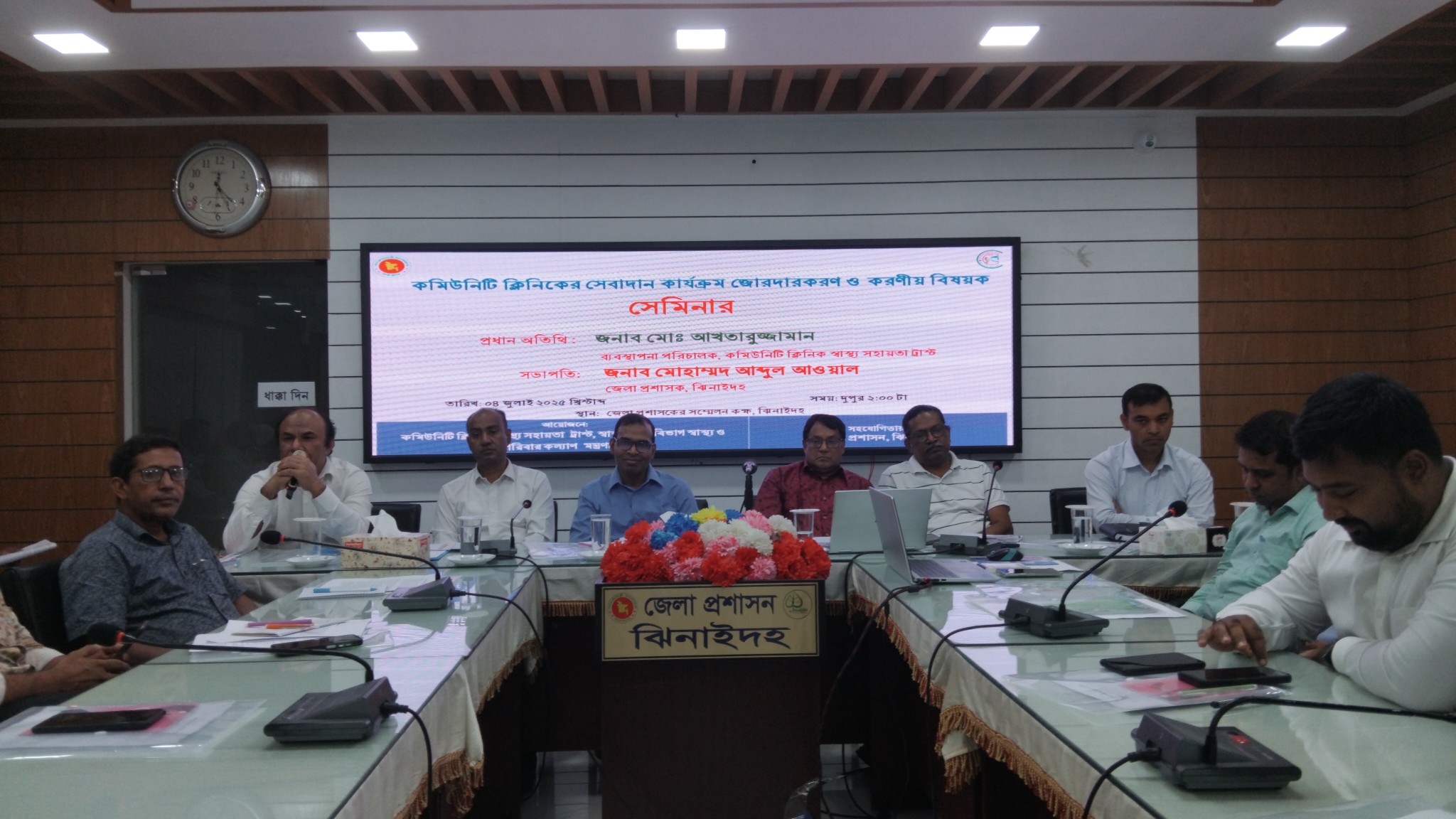ঝিনাইদহ জেলা প্রশাসক মোঃহাম্মদ আব্দুল আউয়ালের সভাপতিত্বে সেমিনারে অন্যান্যের মধ্যে বক্তব্য রাখেন, উপ সচিব মোহাম্মদ নাসির উদ্দিন, সিভিল সার্জন ডাঃ কামরুজ্জামান, স্থানীয় সরকার বিভাগের উপ-পরিচালক রথীন্দ্রনাথ রায়, ঝিনাইদহ জেলা রিপোর্টার্স ইউনিটির সভাপতি এম এ কবীর,ঝিনাইদহ প্রেসক্লাবের সভাপতি আসিফ কাজল, বিশিষ্ট ব্যক্তিত্ব মঞ্জুরুল কাদের, ঝিনাইদহ পরিবার পরিকল্পনা বিভাগের উপ-পরিচালক মোজাম্মেল করিম, সদর উপজেলা নিবার্হী অফিসার রিজিয়া আক্তার চৌধুরী, উপজেলা স্বাস্থ্য কর্মকর্তা ডাঃ মিথিলা ইসলাম, তরুণ কুমার দাস, প্রকৌশলী শামীম হোসেন, মানবাধিকার কর্মী অধ্যক্ষ আমিনুর রহমান টুকু, দৈনিক যুগান্তর প্রতিনিধি মিজানুর র, কমিউনিটি হেলথ প্রোভাইডার পারভীন সুলতানা, মাজেদুল ইসলাম, খলিলুর রহমান ও তানিয়া আক্তার,খাইরুল আলম,