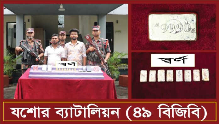 প্রসে বজ্ঞিপ্ততিে বলা হয়ছে,েগোপন সংবাদরে ভত্তিতিে বজিবিি একটি টহলদল, উক্ত স্থান থকেে ঢাকা থকেে যশোরগামী একটি বাসে তল্লাশি চালযি়ে দুই জনকে আটক কর।ে এরপর তাদরে পকটে ও ম্যানব্যিাগরে ভতির থকেে ৮টি র্স্বণরে বার উদ্ধার করা হয়। উদ্ধারকৃত র্স্বণরে ওজন ৯৭০ গ্রাম। যার বাজার মূল্য ১কোটি ৪১ লাখ ৩৩ হাজার ৩৪০ টাকা।
