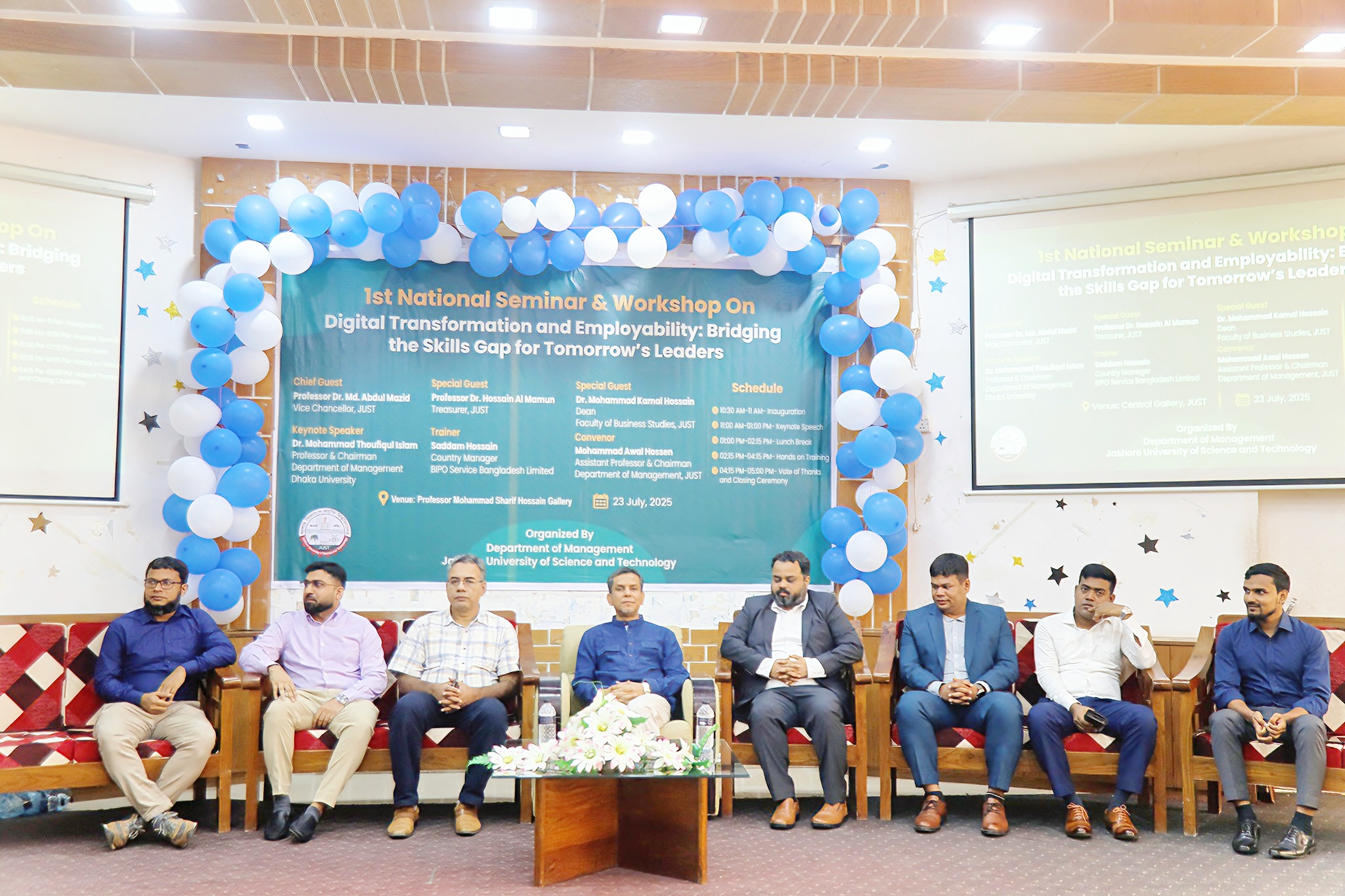 সংবাদ বিজ্ঞপ্তি : ডিজিটাল রুপান্তর ও কর্মসংস্থান: আগামীর নেতৃত্বের জন্য দক্ষতার ঘাটতি দূরীকরণ শীর্ষক জাতীয় সেমিনার ও প্রশিক্ষণ কর্মশালা আয়োজন করে যশোর বিজ্ঞান ও প্রযুক্তি বিশ্ববিদ্যালয়ের (যবিপ্রবি) ব্যবস্থাপনা বিভাগ। এরই মাধ্যমে পর্দা নামলো যবিপ্রবির ২৭ টি বিভাগ ও একটি অনুষদের প্রায় দুই মাসব্যাপী ন্যাশনাল কনফারেন্স কার্নিভালের।