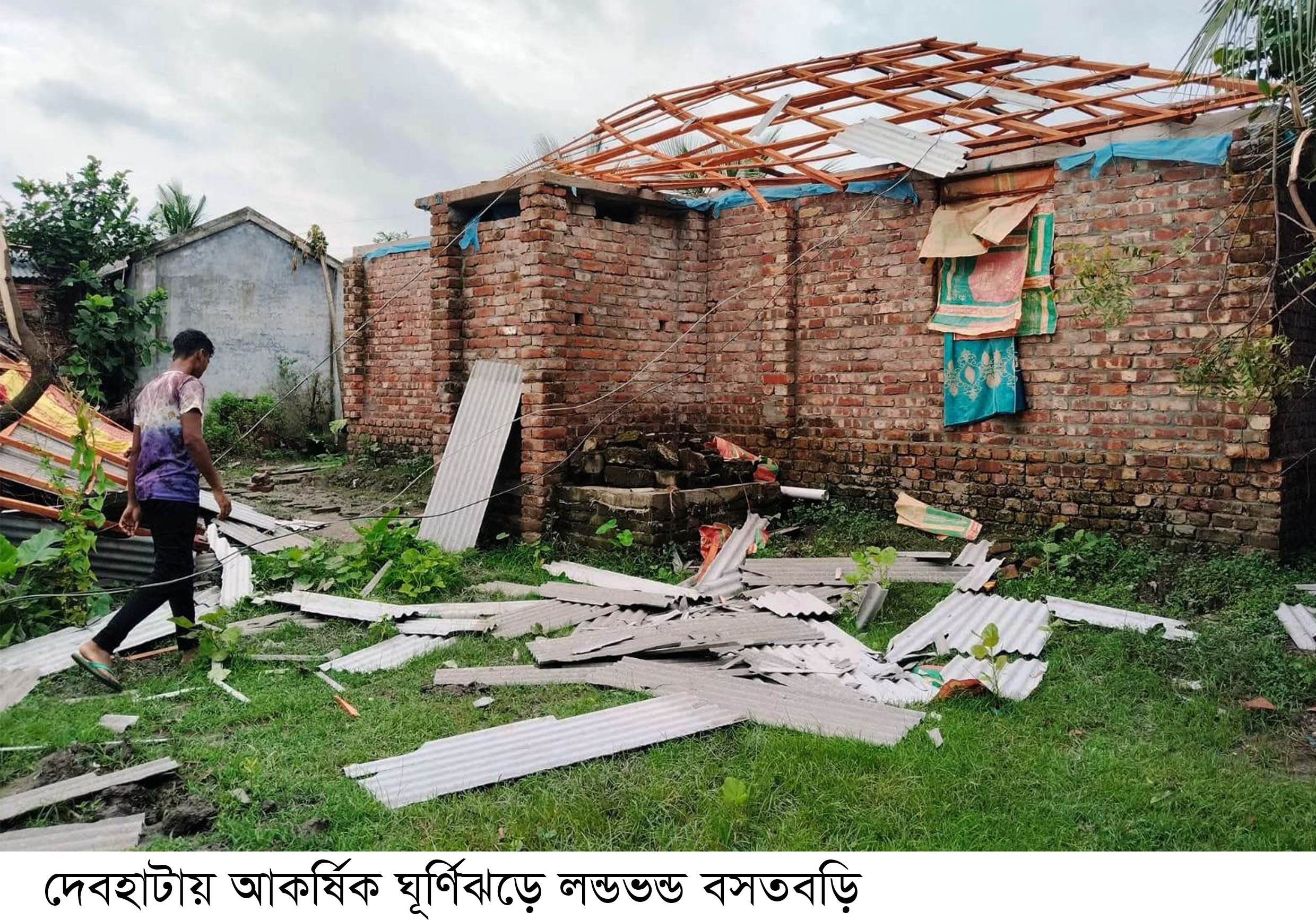 থেকে ৩০ সেকেন্ড স্থায়ী এক আকর্ষিক ঘূর্ণিঝড়ে একটি পরিবারের বসতঘর সম্পূর্ণরূপে