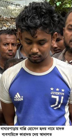 স্টাফ রিপোর্টার, বাঘারপাড়া (যশোর) : শনিবার দুপুরে যশোরের বাঘারপাড়ায় বাপ্পি হোসেন হৃদয় নামে এক মাদক ব্যবসায়ীকে ১০ দিনের কারাদন্ড দিয়েছে ভ্রাম্যমান আদালত।