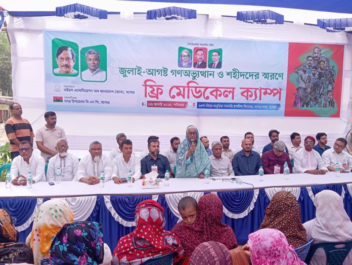 জুলাই আগস্টের গণঅভ্যুত্থান ও শহীদদের স্মরণে ডক্টর অ্যাসোসিয়েশন অব বাংলাদেশ ( ড্যাব) যশোর জেলা শাখা আয়োজিত ফ্রি মেডিকেল ক্যাম্পের উদ্বোধনী অনুষ্ঠানে প্রধান অতিথির বক্তৃতায় তিনি এ কথা বলেন। গতকাল শনিবার যশোর সদর উপজেলা বিএনপির সহযোগিতায় চাচড়া-ভাতুড়িয়া সরকারি প্রাথমিক বিদ্যালয় মাঠে এই ফ্রি মেডিকেল ক্যাম্প অনুষ্ঠিত হয়।