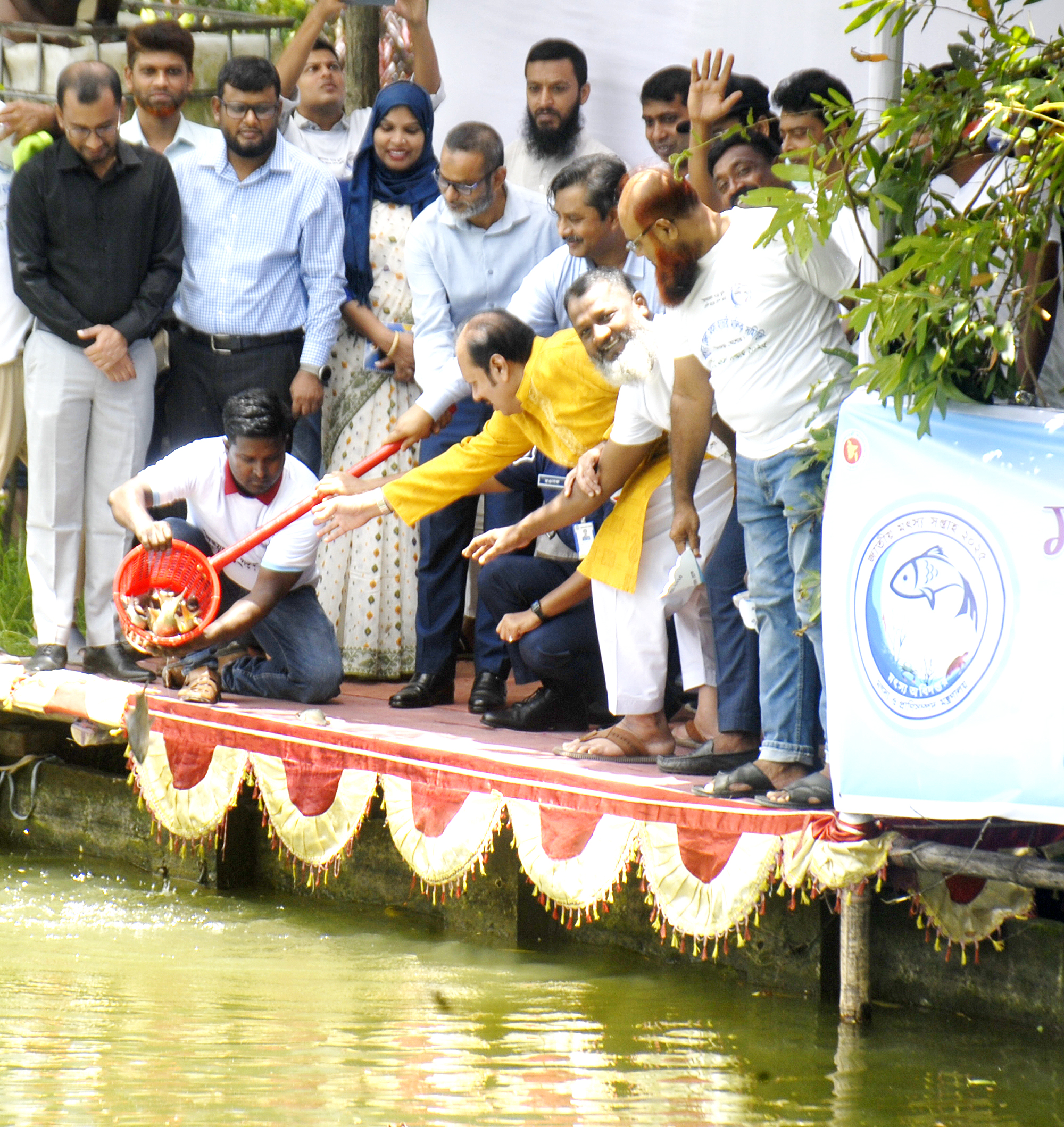 এরপর পৌরসভার মুকুরে মাছের পোনা অবমুক্ত করা হয়।