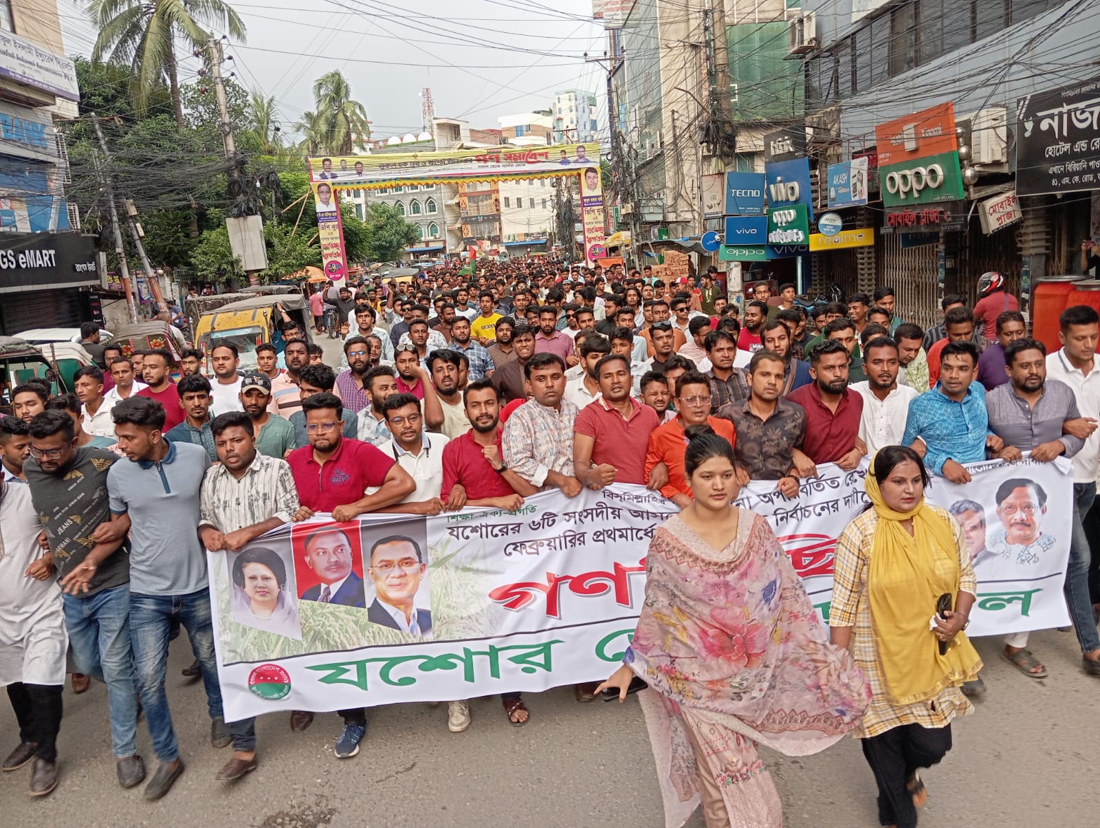 যশোরের ৬টি সংসদীয় আসনের বর্তমান সীমানা অপরিবর্তিত রেখে আগামী ফেব্রুয়ারির প্রথমার্ধে জাতীয় সংসদ নির্বাচনের দাবিতে গণমিছিল
