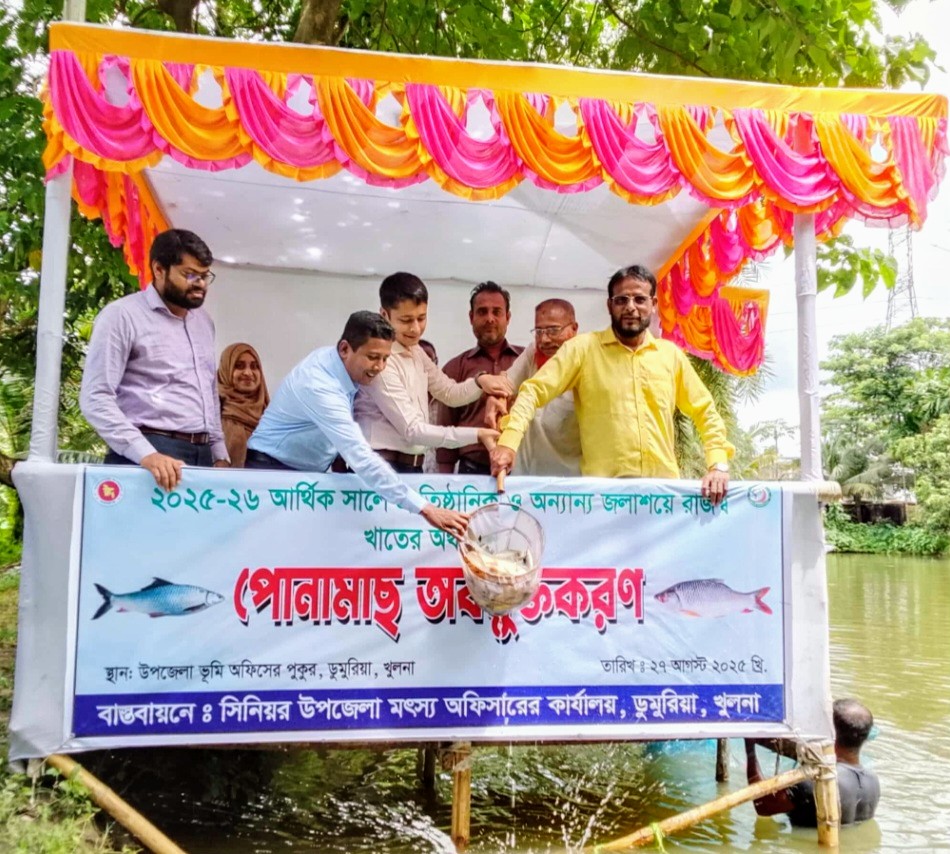 ডুুমুরিয়ায় জলাশয়ে পোনা মাছ অবমুক্তকরণ