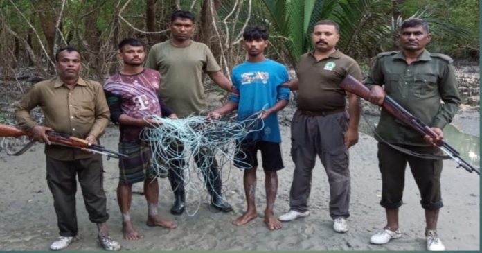 চর সংলগ্ন এলাকা বনের মধ্যে হেঁটে টহলের সময় হরিণ শিকারের জন্য ফাঁদ পেতে অপেক্ষায় থাকা দুই ব্যক্তিকে বসে থাকতে দেখেন বনরক্ষীরা। এসময় বনরক্ষীদের উপস্থিতি দেখতে পেয়ে ওই দুই চোরা শিকারী বনের মধ্যে দৌড়ে পালিয়ে যাওয়ার চেষ্টা করলে ধাওয়া করে দুই চোরা শিকারীকে আটক করে। আটক শিকারিরা হলেন, রাজু শিকদার (৩০) ও জামাল হাওলাদার (২২)। এদের বাড়ি পিরোজপুরের মঠবাড়িয়া উপজেলার খেজুরবাড়িয়া গ্রামে বলে বনরক্ষীরা জানান।