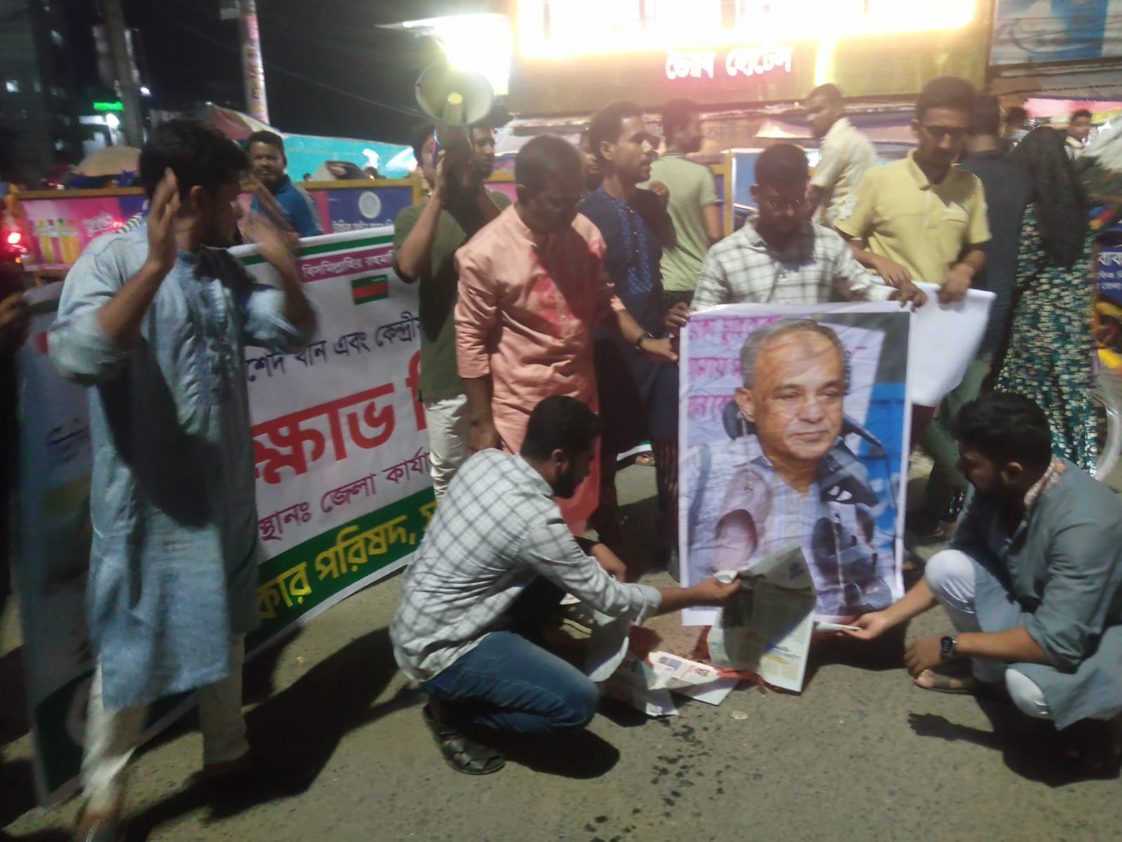 মিছিলে বক্তারা হামলার বিচার বিভাগীয় তদন্ত, স্বরাষ্ট্র উপদেষ্টার পদত্যাগ এবং জাতীয় পার্টিসহ ১৪ দলের রাজনীতি নিষিদ্ধ করার দাবি জানান। মিছিলটি শহরের প্রধান সড়ক প্রদক্ষিণ করে জাতীয় পার্টির কার্যালয়ের সামনে পৌঁছালে প্রশাসন বাধা দেয়। পরে ফেরি দড়াটানা ভৈরব চত্বরে গিয়ে বিক্ষোভকারীরা স্বরাষ্ট্র উপদেষ্টার কুশপুত্তলিকা দাহ করে।