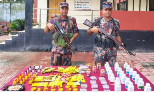 বেনাপোল থেকে এনামুল হকঃ বেনাপোলের ভিন্ন সীমান্তে অভিযান চালিয়ে বিদেশী মদ সহ ২০ লাখ ৫০ হাজার টাকার বিভিন্ন প্রকারের ভারতীয় চোরাই পণ্য জব্দ করেছে বর্ডার গার্ড বাংলাদেশ বিজিবি। গোপন সংবাদে বেনাপোল আইসিপি, বেনাপোল বিওপি, শালকোনা এবং আমড়াখালি চেকপোষ্ট এলাকায় বিকাল থেকে সন্ধ্যা পর্যন্ত অভিযান চালিয়ে বিদেশী মদ ভারতীয় ফেনসিডিল শাড়ি, কম্বল, পোশাক সামগ্রী চকলেট, পেস্তা বাদাম, খৈনি বিভিন্ন প্রকার ওষুধ কসমেটিক সামগ্রী ও মোটরসাইকেল পার্টস জব্দ করা হয়।এসব জব্দ করা পন্যের মূল্য প্রায় ২০ লাখ ৫০ হাজার টাকা বলে জানায় বিজিবি।