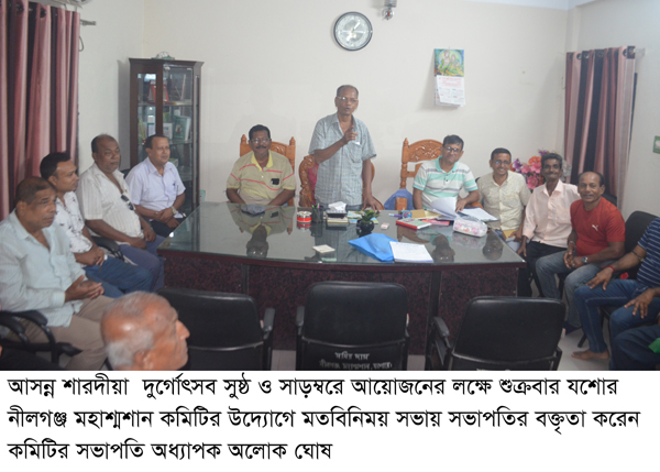 আসন্ন শারদীয়া দুর্গোৎসব সুষ্ঠ ও সাড়ম্বরে আয়োজনের লক্ষে যশোর নীলগঞ্জ মহাশ্মশান কমিটির মতবিনিময় সভা অনুষ্টিত
