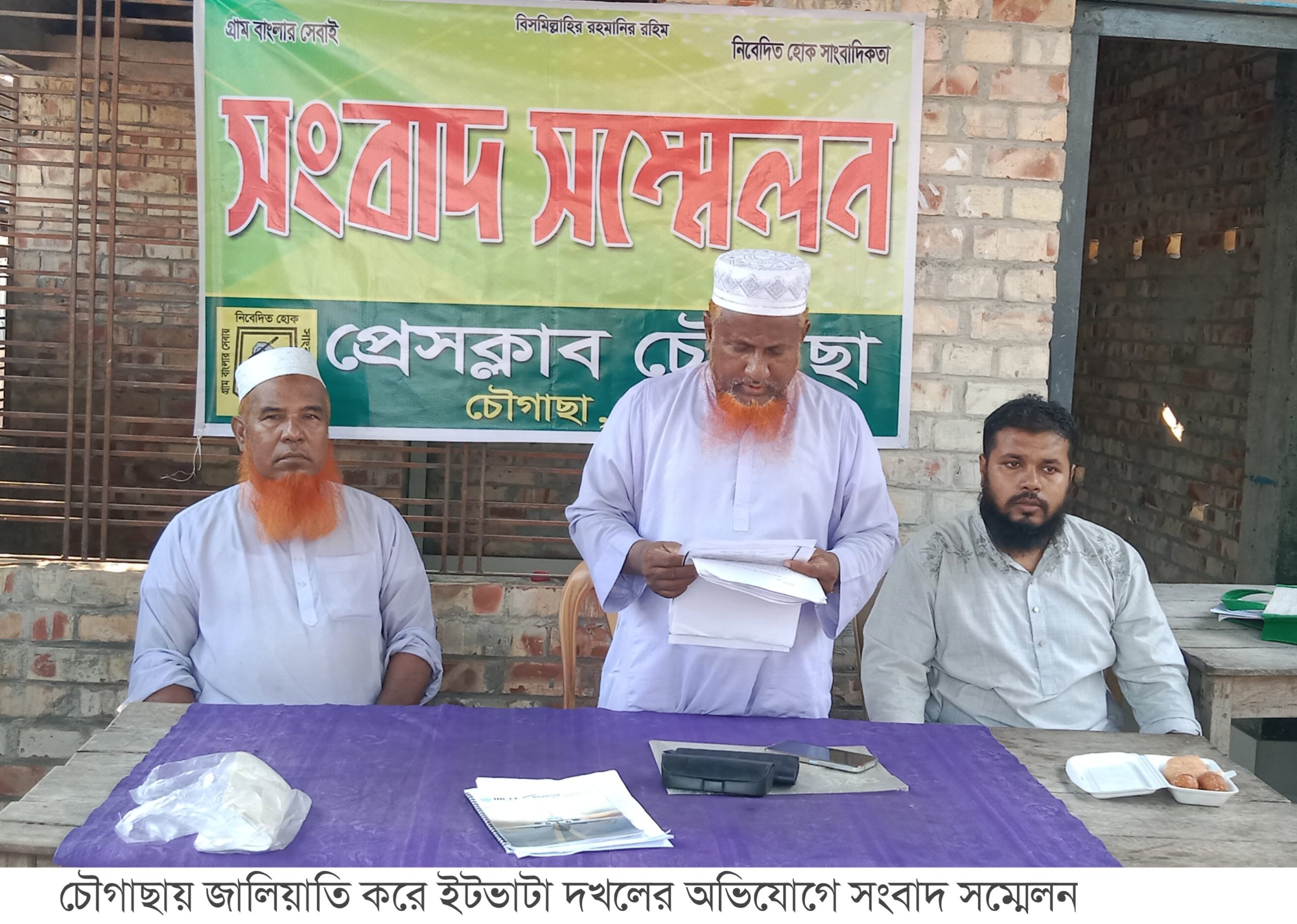 রায়হান হোসেন, চৌগাছা পৌর প্রতিনিধিঃ যশোরের চৌগাছায় জালিয়াতির মাধ্যমে ইটভাটা দখল, নাম পরিবর্তনসহ নানা অনিয়মের অভিযোগ তুলে সংবাদ সম্মেলন করেছেন ভাটার মূল মালিকপক্ষ। বুধবার (১০ সেপ্টেম্বর) বিকেলে প্রেসক্লাব চৌগাছা কার্যালয়ে এই সংবাদ সম্মেলন করেন ভাটার মূল মালিকপক্ষ চৌগাছা কামিল মাদ্রাসার অধ্যক্ষ ড. মাওলানা আলাউদ্দীন ও সাবেক অধ্যক্ষ মাওলানা আব্দুল লতিফ।