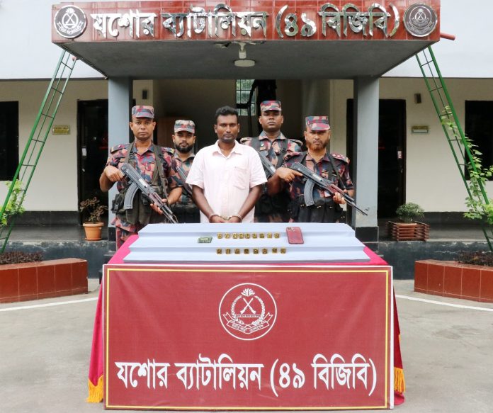 যশোর অফিস : যশোরে তিন কোটি টাকার সোনার বারসহ এক যুবককে আটক করেছে বিজিবি। আটক সঞ্জয় সরকার ফরিদপুর জেলার জয়পাশা উপজেলার বোয়ালমারী থানার ধুলজোড়া গ্রামের অখিল সরকারের ছেলে। বৃহস্পতিবার সকাল সাড়ে ১১টায় যশোর–নড়াইল সড়কের দারাজহাট হাসান ফিলিং স্টেশনের সামনে থেকে তাকে আটক করা হয়। এ সময় তার কাছ থেকে ১৭টি সোনার বার উদ্ধার করা হয়, যার ওজন এক কেজি ৯৩৪ গ্রাম।