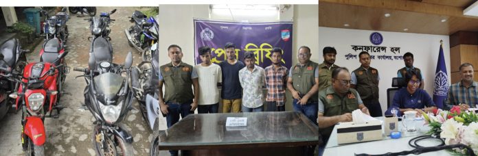 মহাপুলিশ পরিদর্শকের বিশেষ ধন্যবাদ জ্ঞাপন, যশোর ডিবি পুলিশের অভিযানে গোপালগঞ্জ থেকে সাতটি চোরাই মোটরসাইকেল উদ্ধার ৪ চোর চক্রের সদস্যকে গ্রেফতার