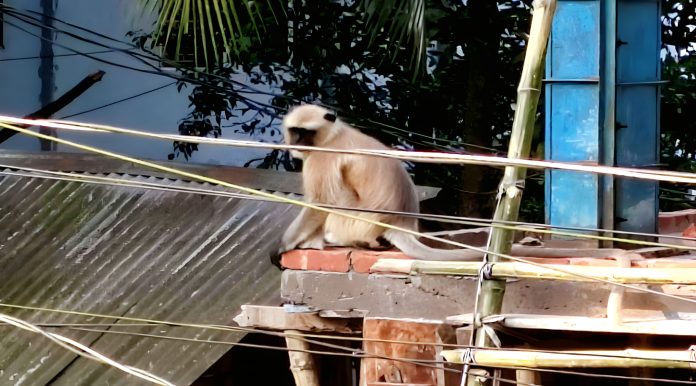কালোমুখো হনুমানের। মানুষের ভয়ে কখনও গাছে, কখনও বাড়ির ছাদে