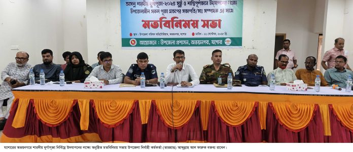 অভয়নগরে মতবিনিময় সভা: নির্বিঘ্নে দুর্গাপূজা উদযাপনে সকলের সহযোগিতা কামনা