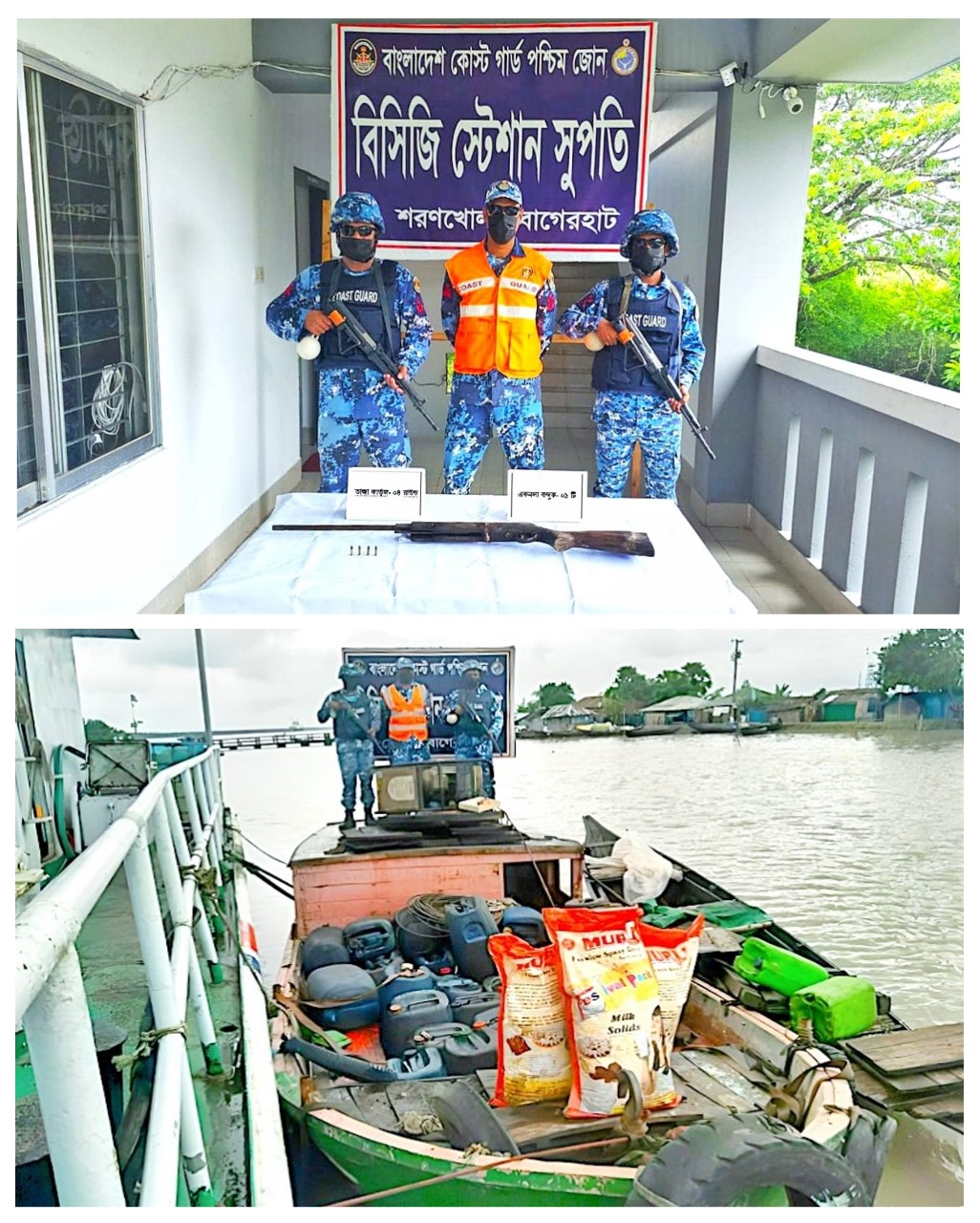 মাসুদ রানা,মোংলা : মোংলা ও পিরোজপুর কোস্ট গার্ডের দুটি পৃথক অভিযানে অস্ত্র, গোলাবারুদ এবং চোরাইকৃত মালামালসহ বোট জব্দ করেছে।